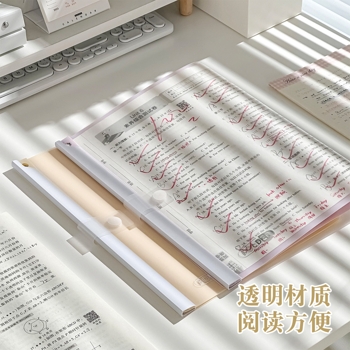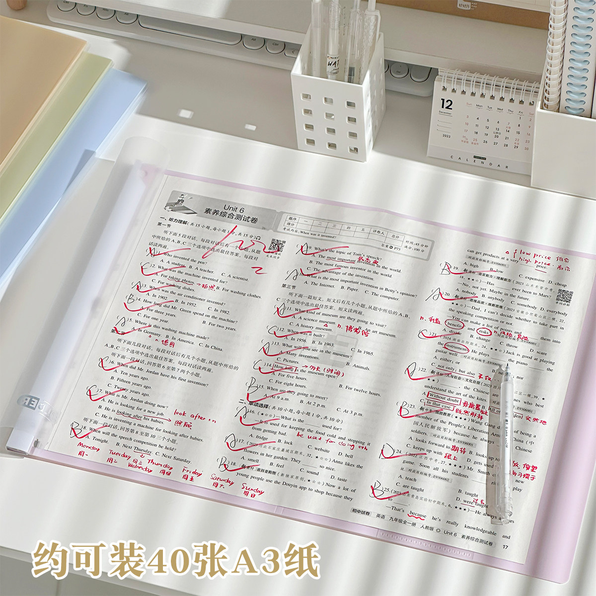 📚 三年二班淡彩A3试卷夹文件夹透明插页试卷整理夹一键收纳小学生专用资料夹初中生高中生准用大容量分类收纳K