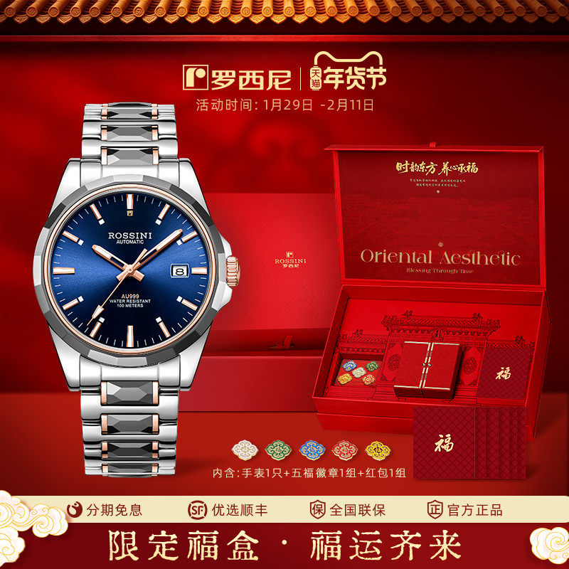 📚 【情人节礼物】罗西尼手表男机械表AU999花钉钨钢防水夜光男表