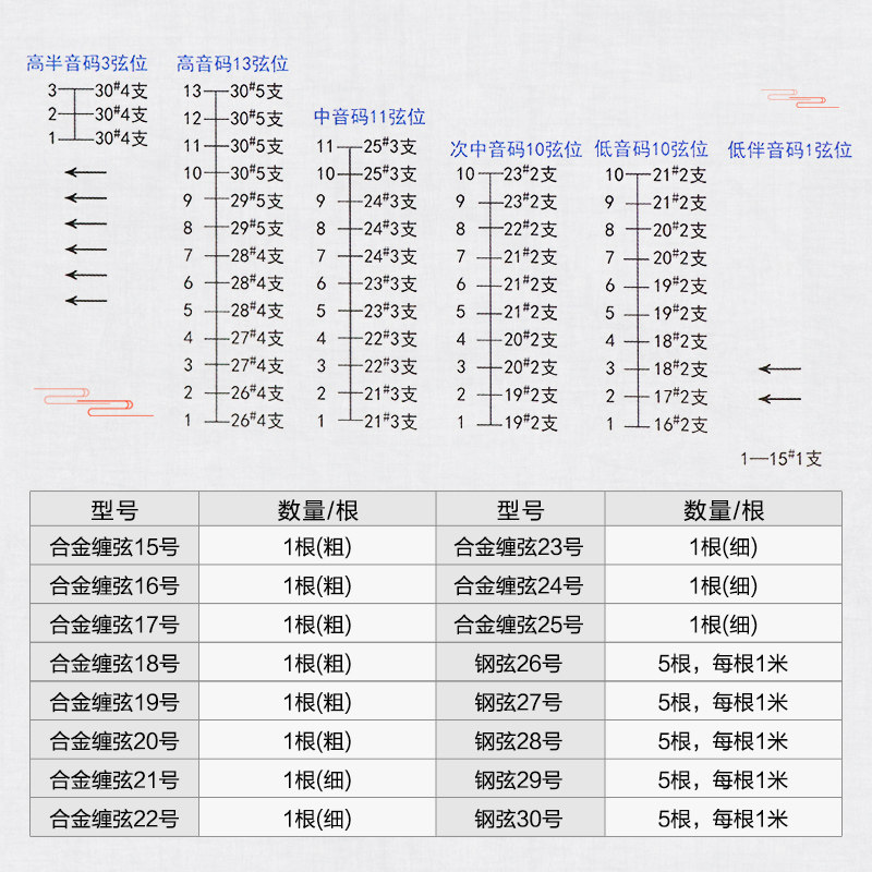 📚 星海福音扬琴琴弦 402扬琴弦 15-30号专业级合金缠弦杨琴弦配件
