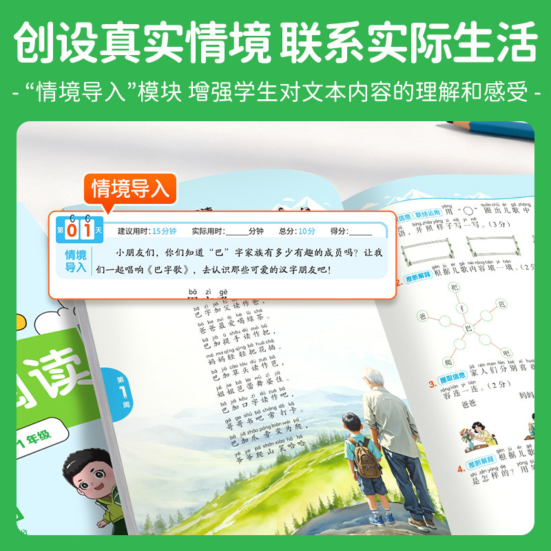 🔍书中涵盖了各个年级的阅读内容,从一二年级的简单故事到五六年级的深度阅读理解,内容丰富,覆盖面广。而且每一章节都有对应的练习题卡,孩子们可以在做题的过程中加深对知识的理解和记忆。