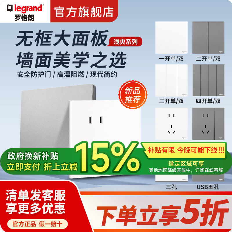 📚 罗格朗开关插座面板16a三孔斜5五孔一开浅央白色空调四孔墙壁正品