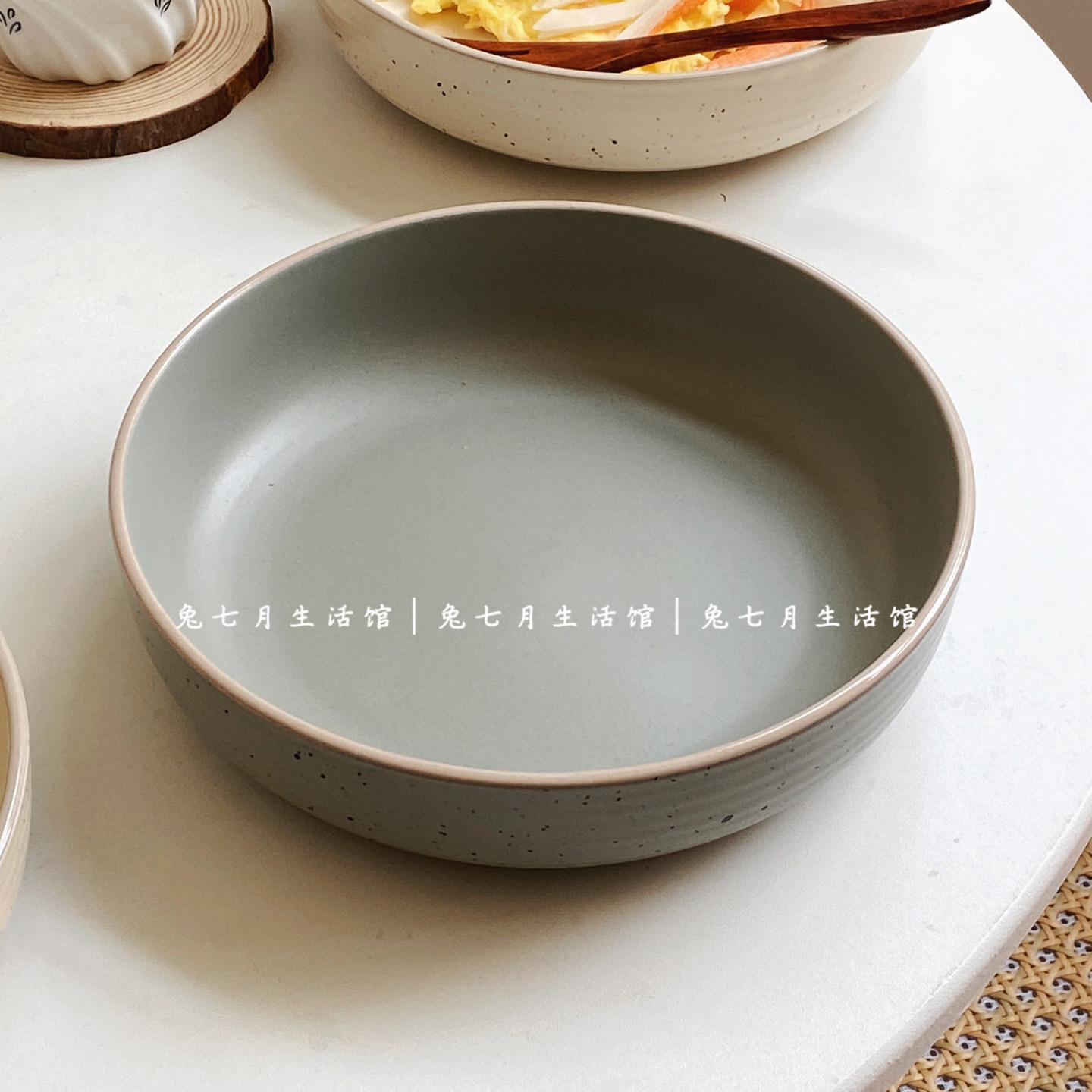 📚 兔七月|日式泼墨陶瓷盘家用菜盘沙拉盘子高级感深盘简约汤盘餐盘