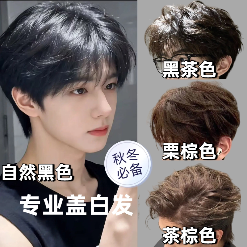 📚 2026男士在家染发膏剂黑茶自然黑盖白发植物正品奶茶冷棕免漂学生