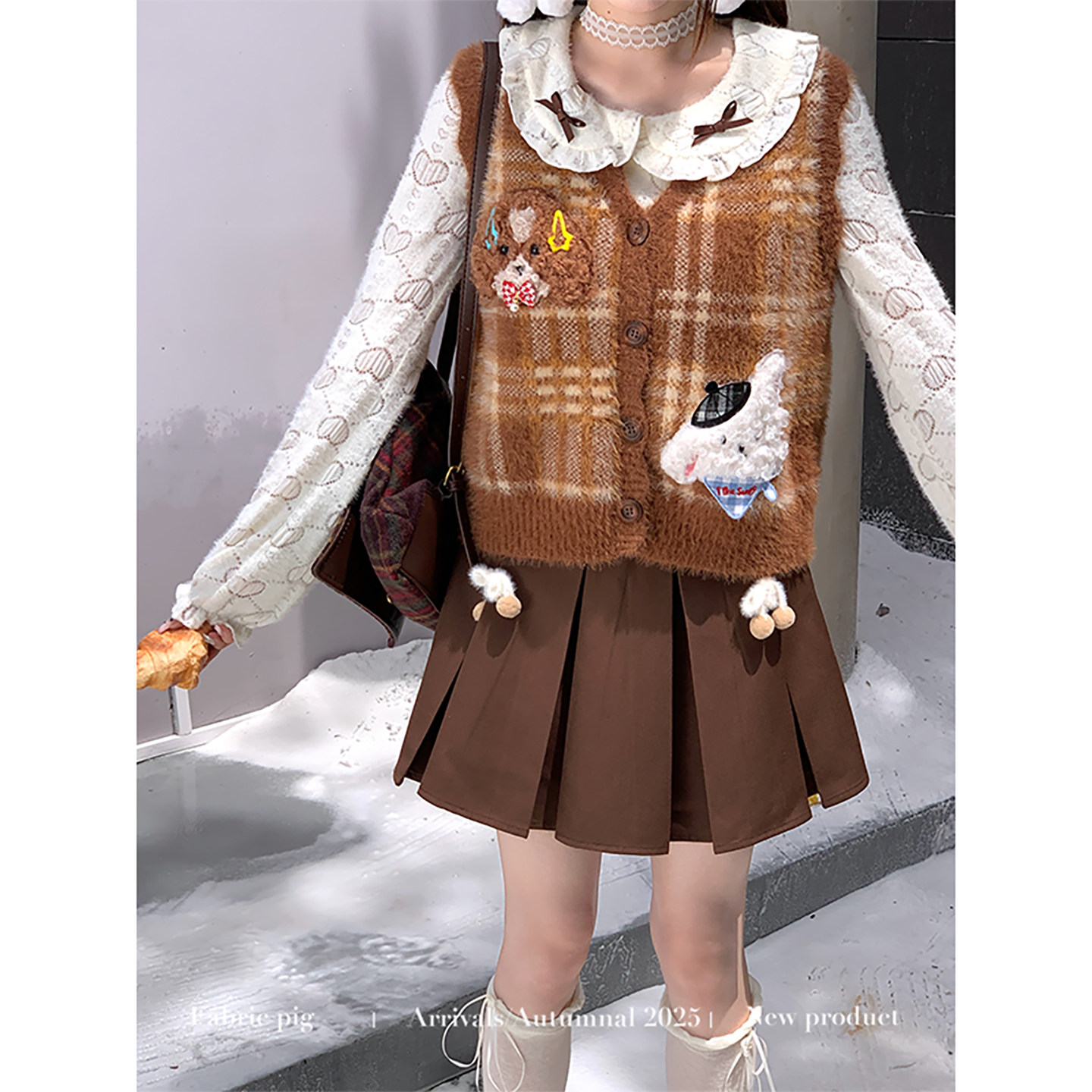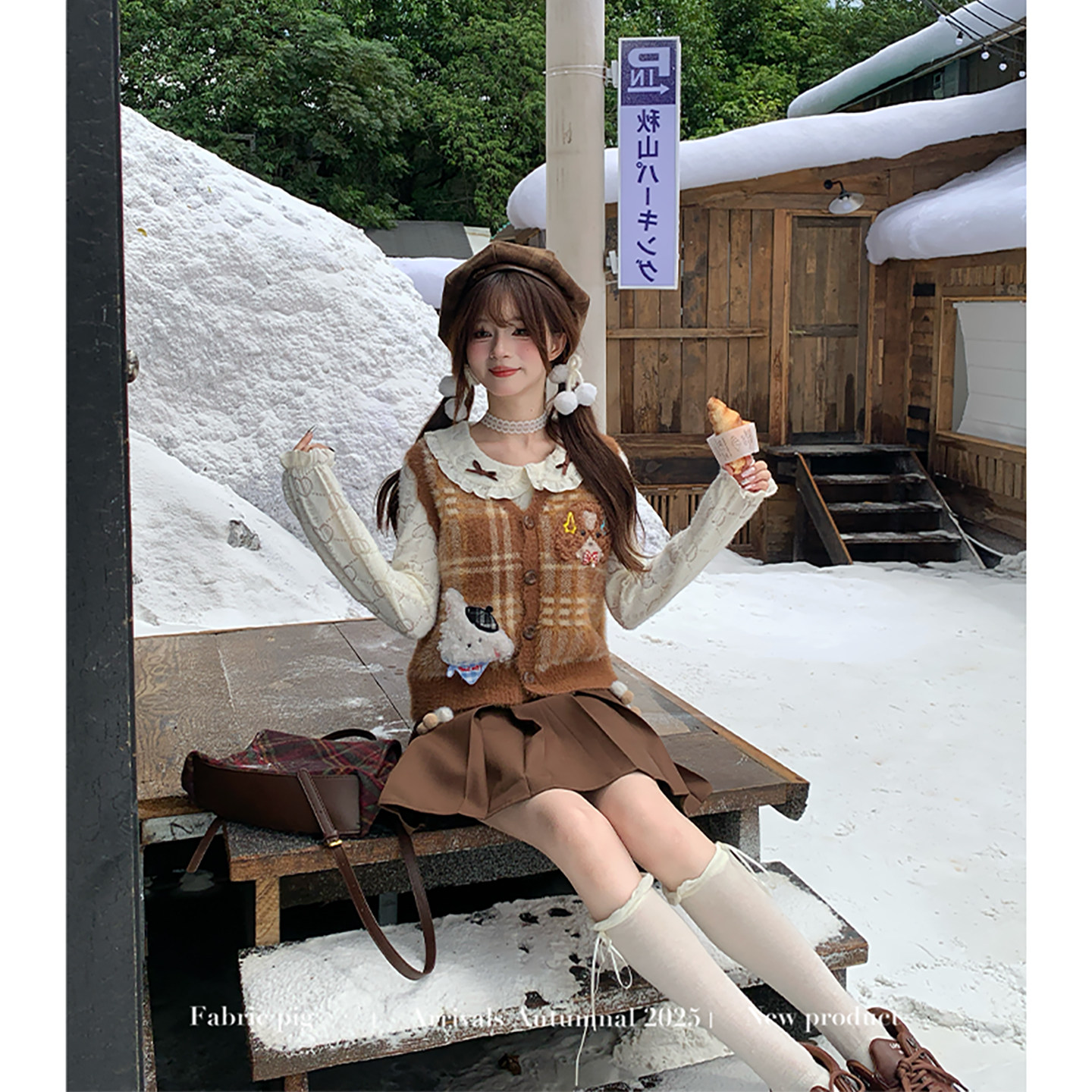 📚 织物猪 焦糖松饼 美拉德穿搭套装女秋冬叠穿毛衣外套娃娃领打底衫