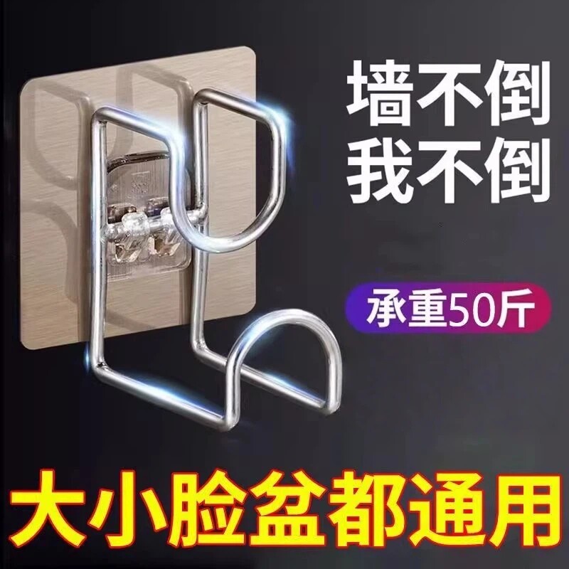 📚 不锈钢免打孔脸盆架挂钩厨房浴室卫生间墙壁挂置物架粘钩多规格