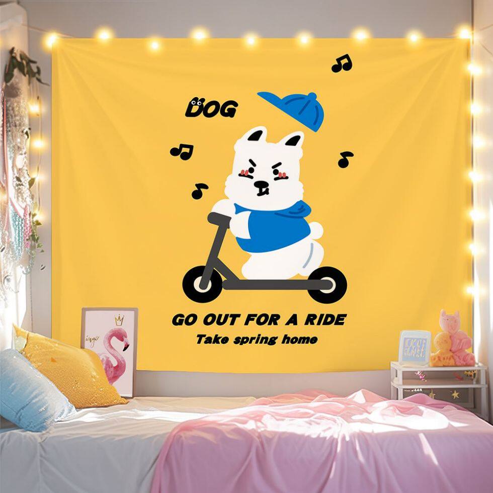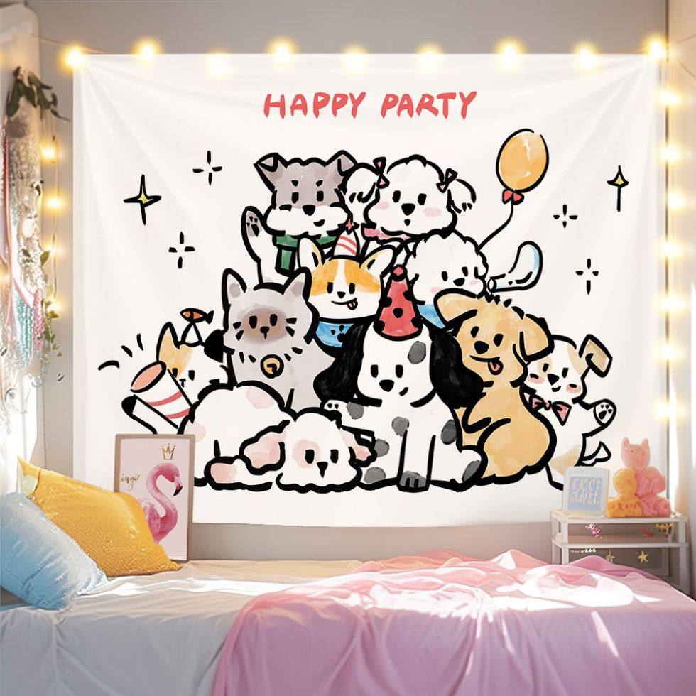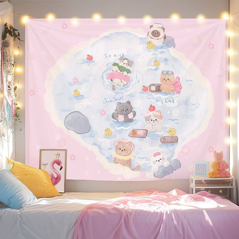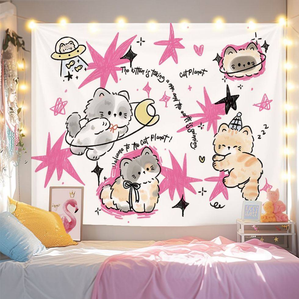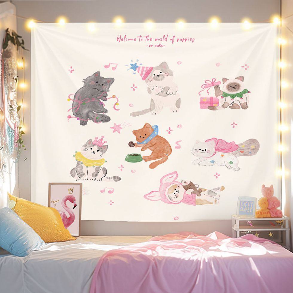 📚 新款可爱卡通ins猫咪狗狗儿童房挂布卧室墙面装饰创意背景布挂毯
