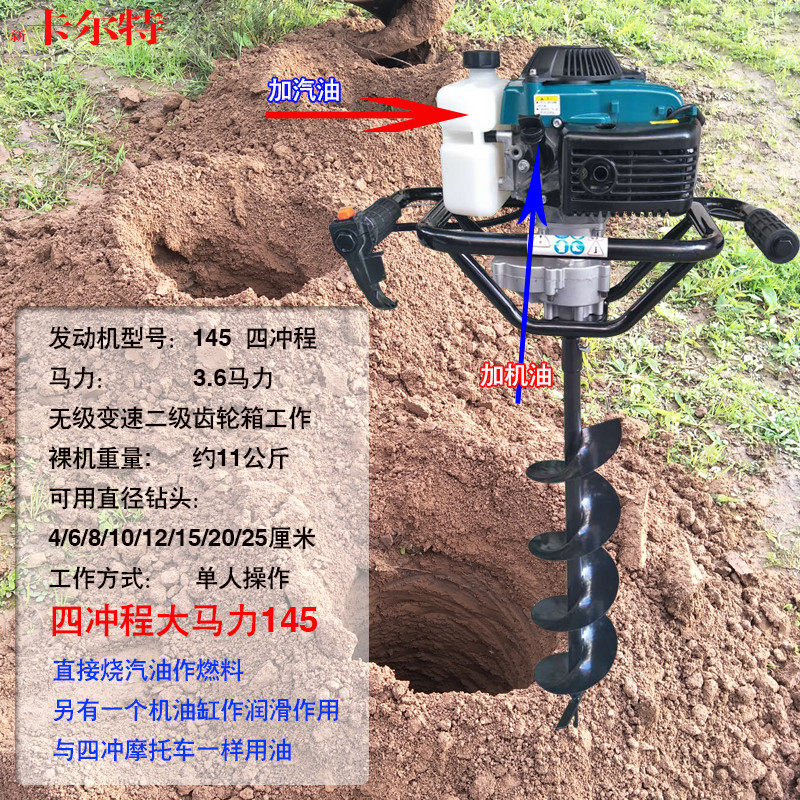 📚 地钻打孔机小型汽油农用钻地果树施肥载树种树挖坑机打洞机打桩机