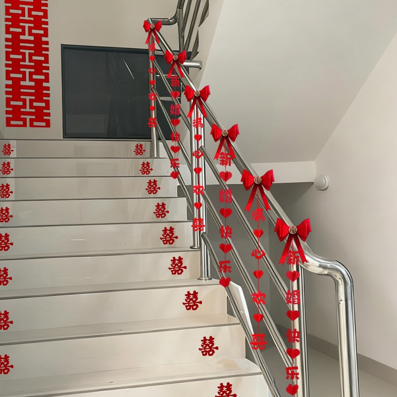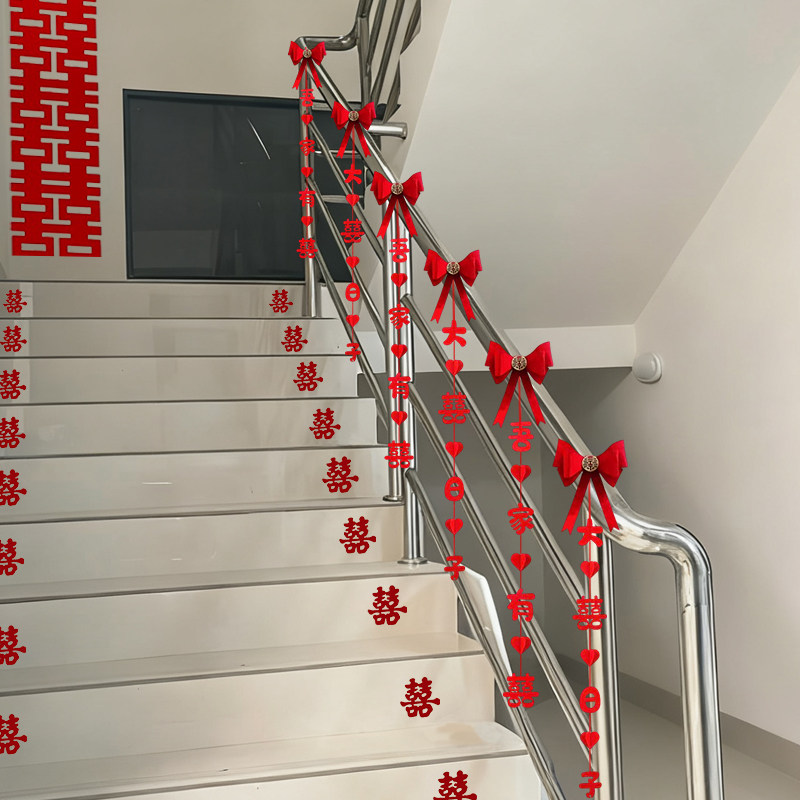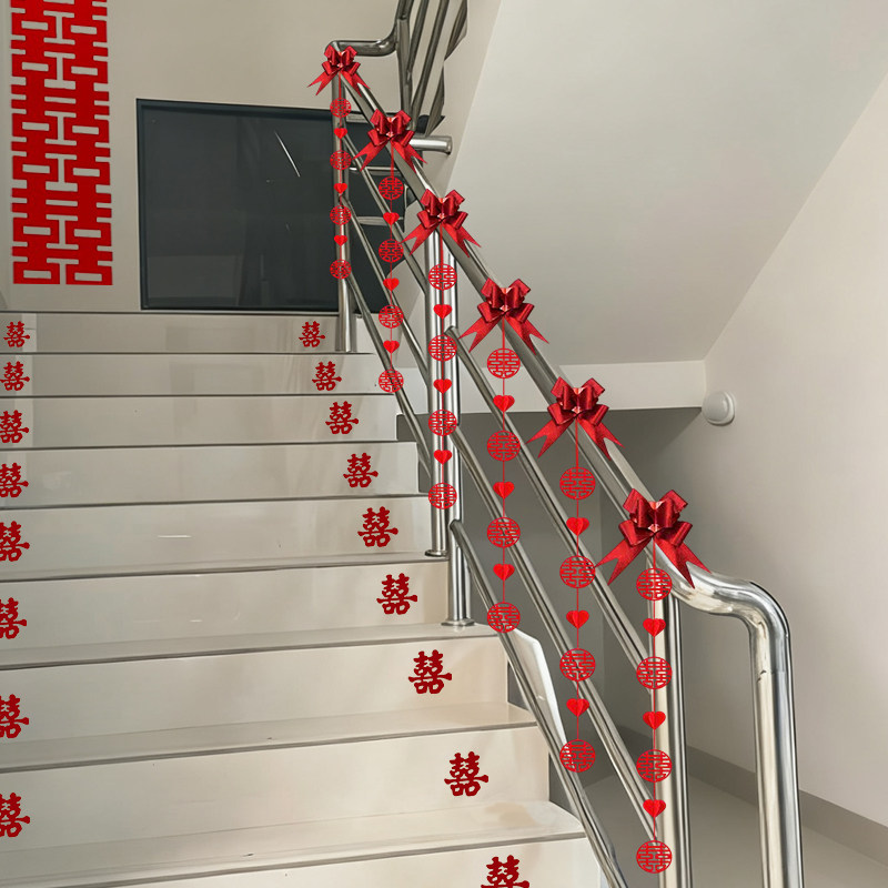 📚 结婚专用楼梯扶手装饰喜字拉花挂饰挂件男方女方婚礼布置简单高级