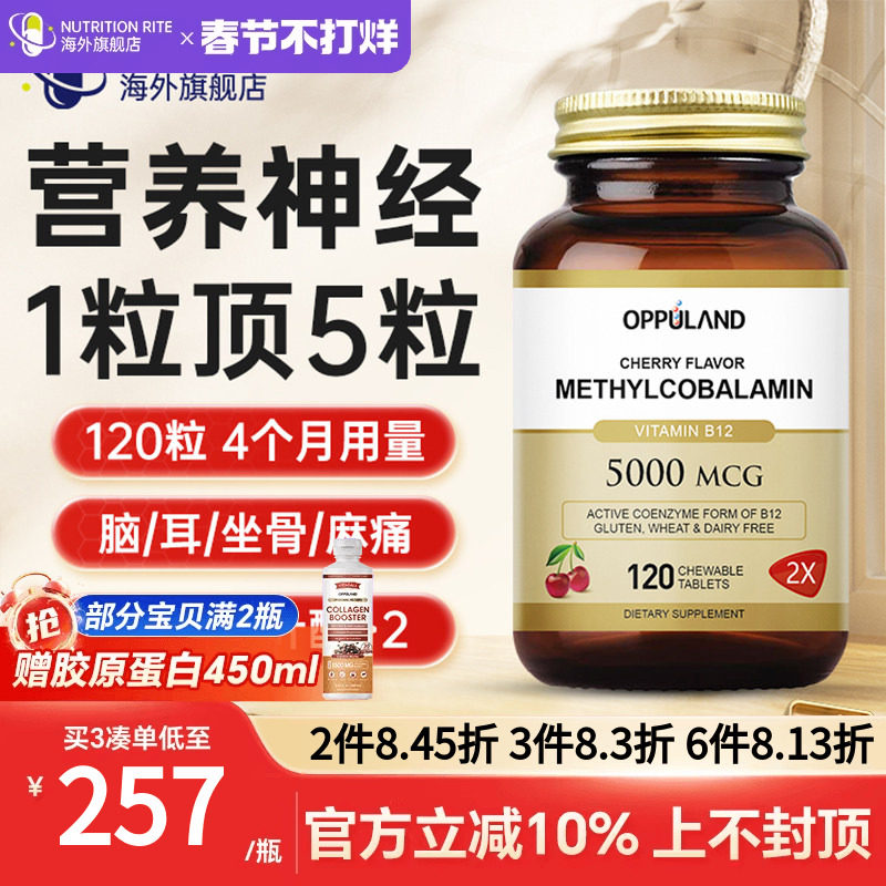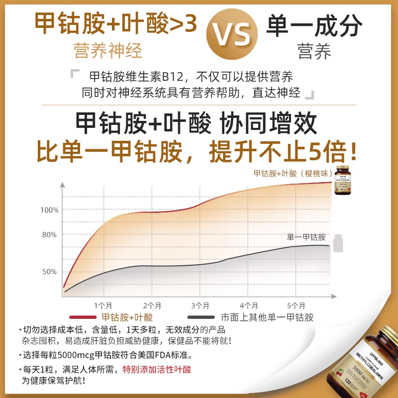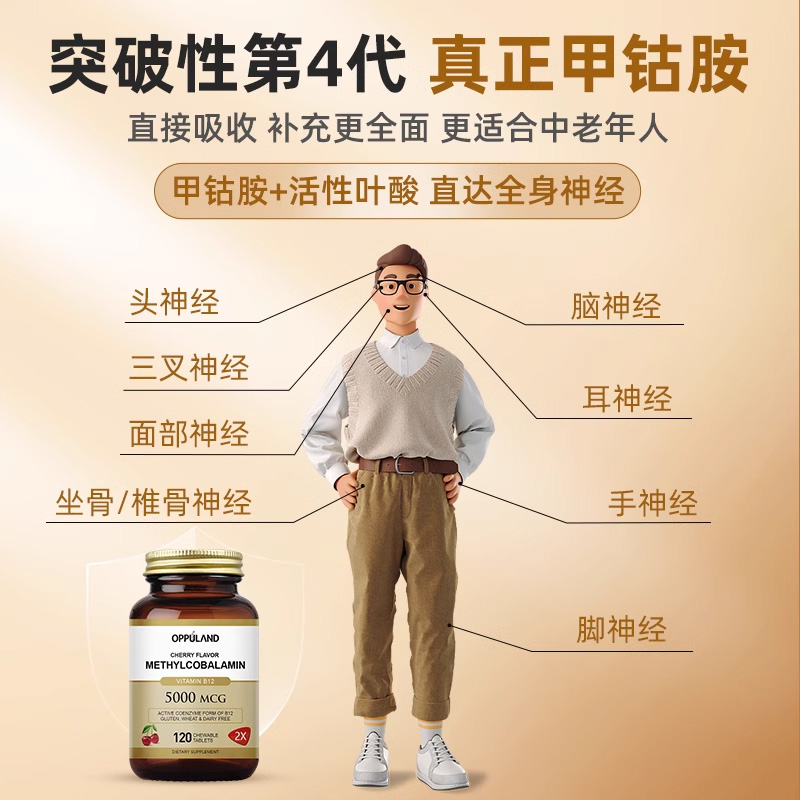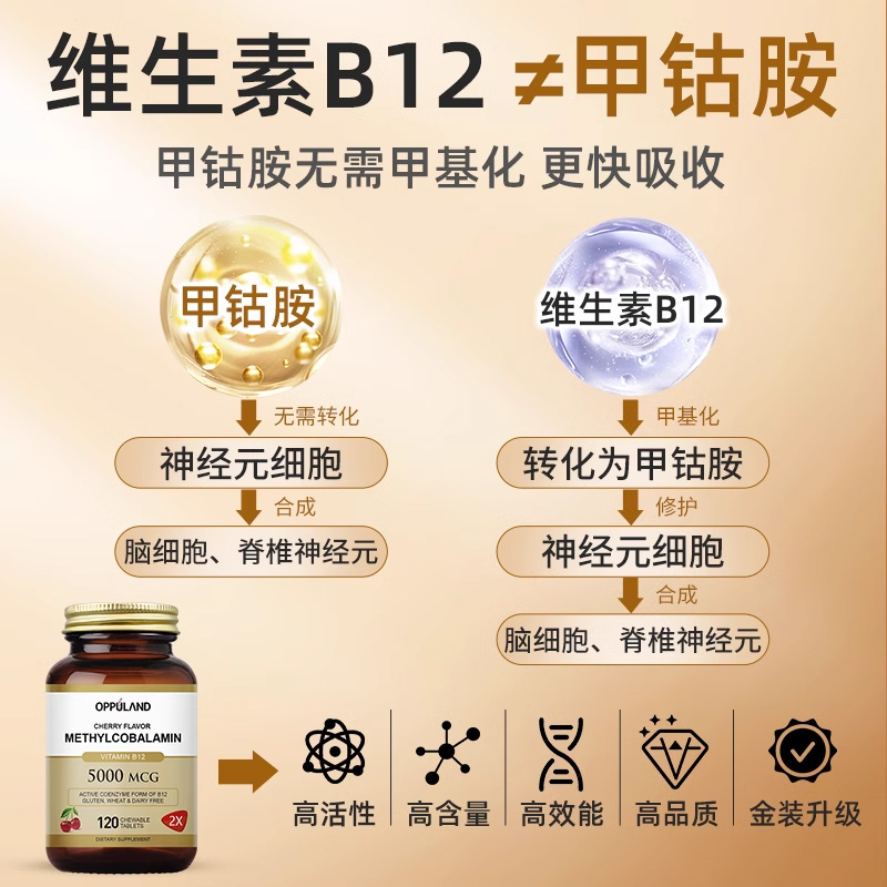 📚 OPPULAND甲钴胺维生素B12叶酸片营养修复神经美国进口正品旗舰店