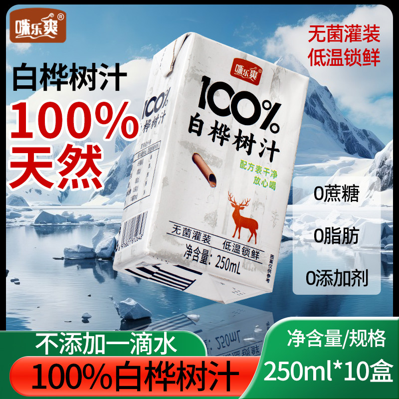 📚 白桦树汁250ml*10盒整箱无糖0脂0卡白桦树原汁原液植物健康饮料