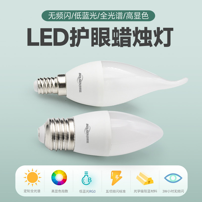 📚 LED客厅卧室2700K3500K水晶灯具电灯泡全光谱无频闪E14E27蜡烛灯