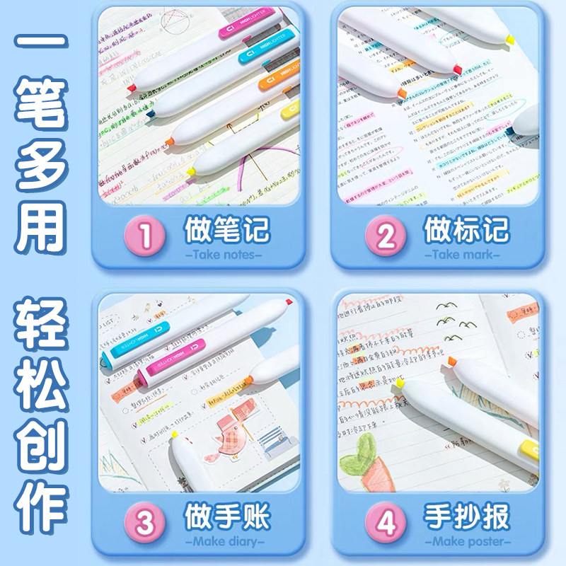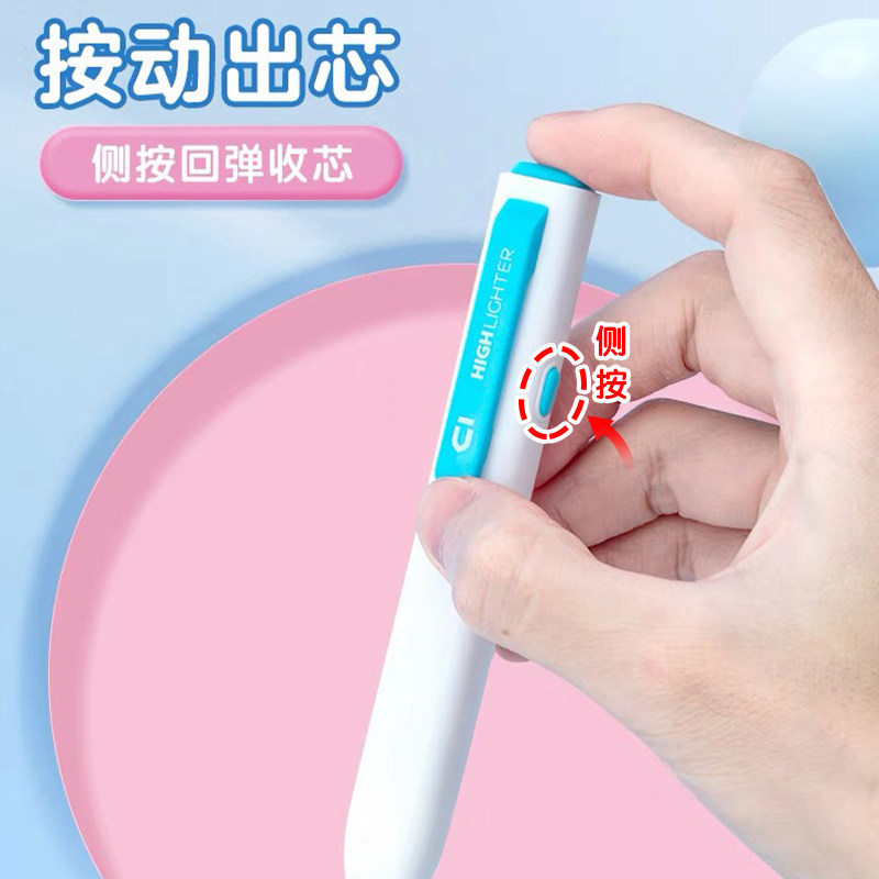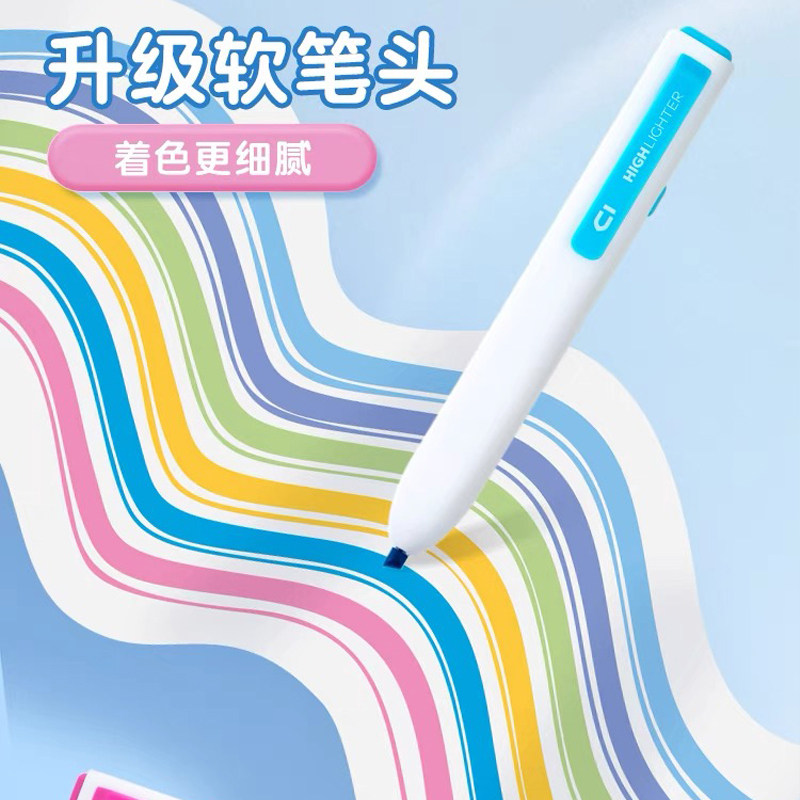 📚 晨光按动小方芯荧光笔软笔头着色细腻耐用无味荧光色淡彩色新国色学生划重点手账彩笔按压式马克笔AHMF0601