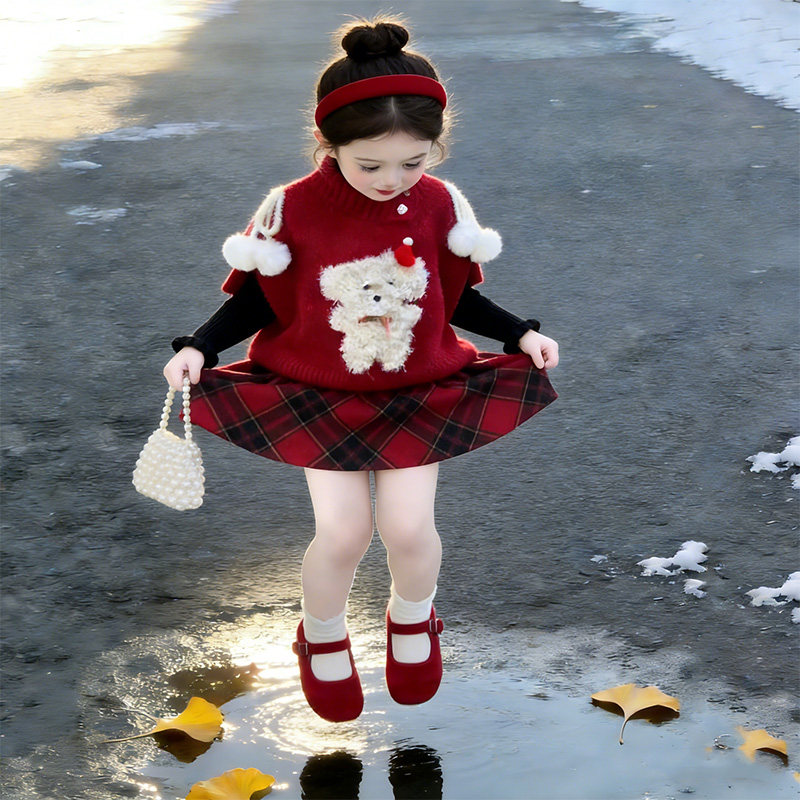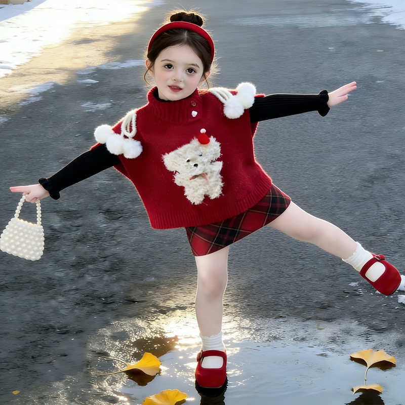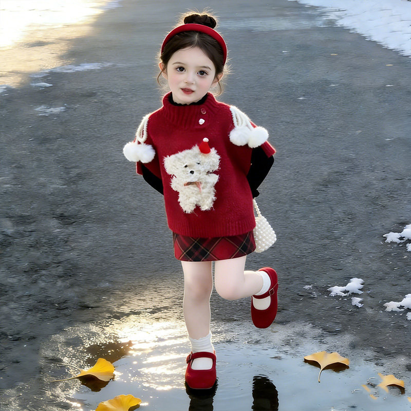 📚 女童红色毛衣套装冬季一整套穿搭洋气女宝宝过年服冬装儿童针织衫