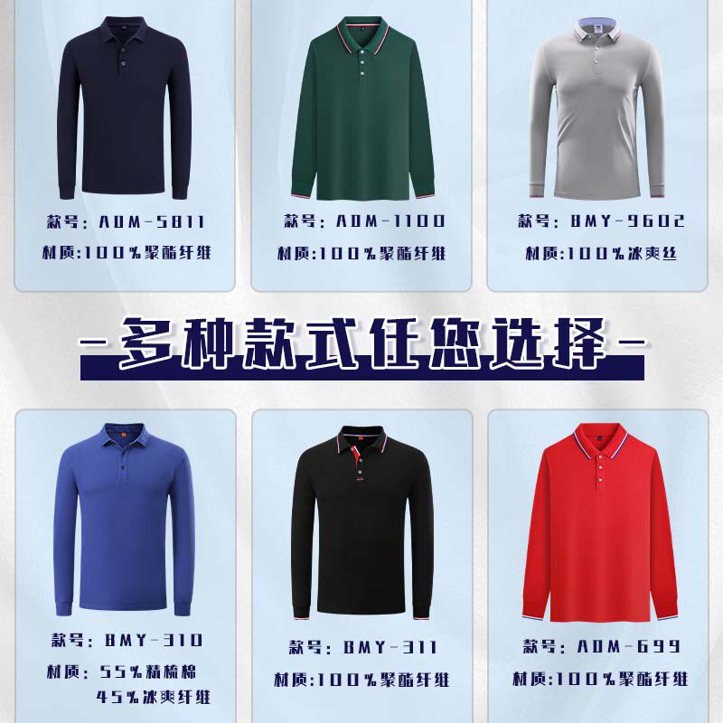 📚 长袖Polo衫定制工作服t恤diy文化广告衫工厂批发衣服定做刺绣logo