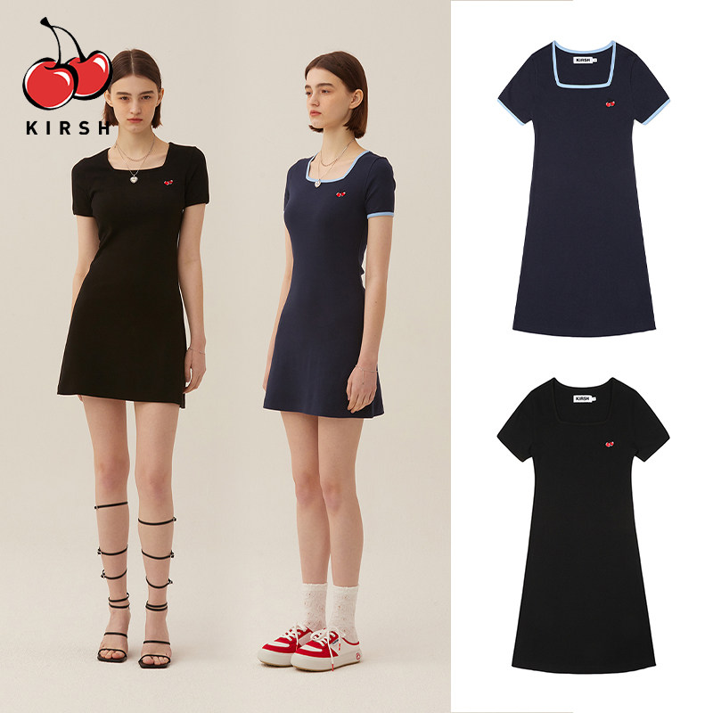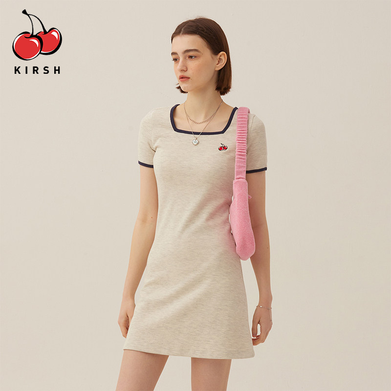 📚 樱桃KIRSH 方领连衣裙女夏季新款收腰显瘦韩版短款韩系A字短裙
