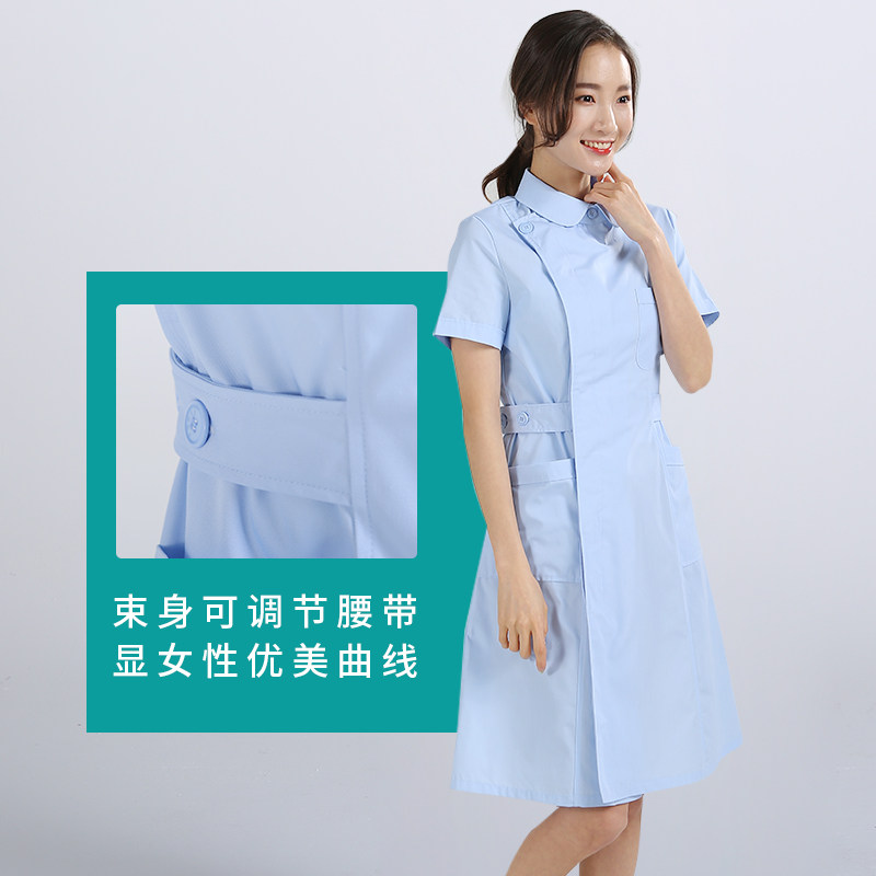 📚 护理部主任护士服长袖春季秋装厚女偏襟粉白绿色修身美容药店裙装