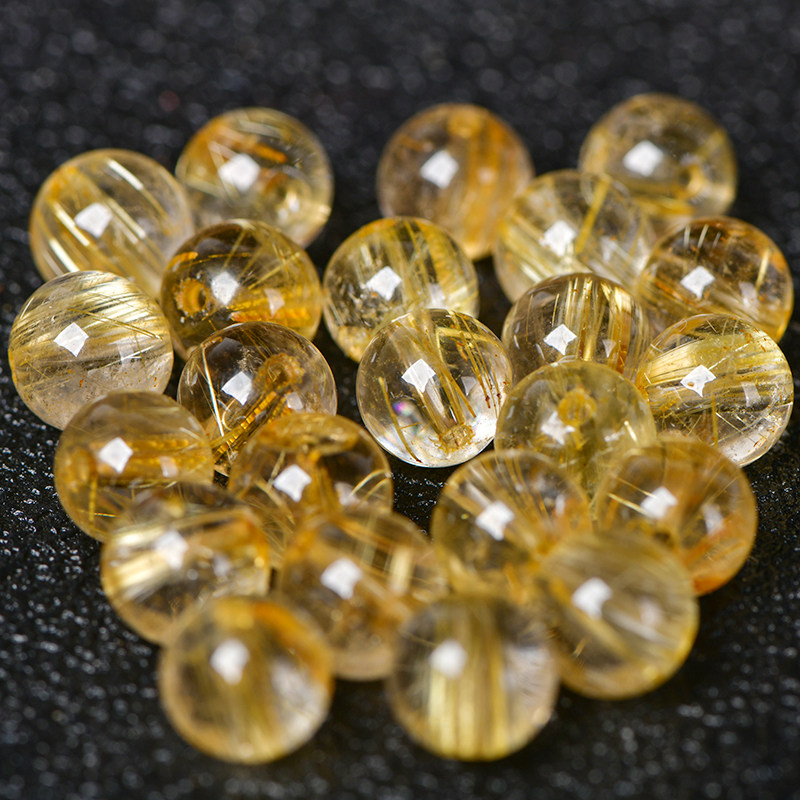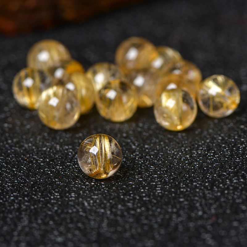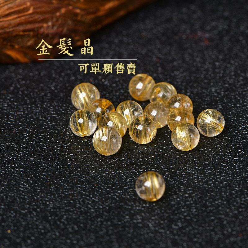📚 金发晶散珠子钛晶圆珠手链手串佛珠diy饰品配件5A原矿水晶珠配珠