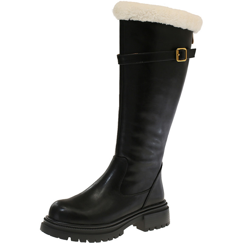 📚 加绒粗跟骑士靴女2025冬季新款小个子增高长靴时尚百搭毛茸茸靴子