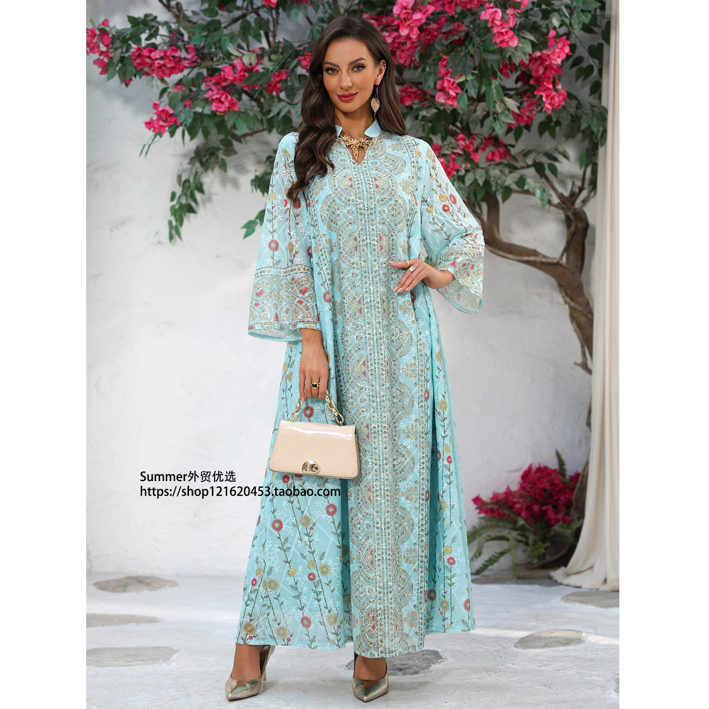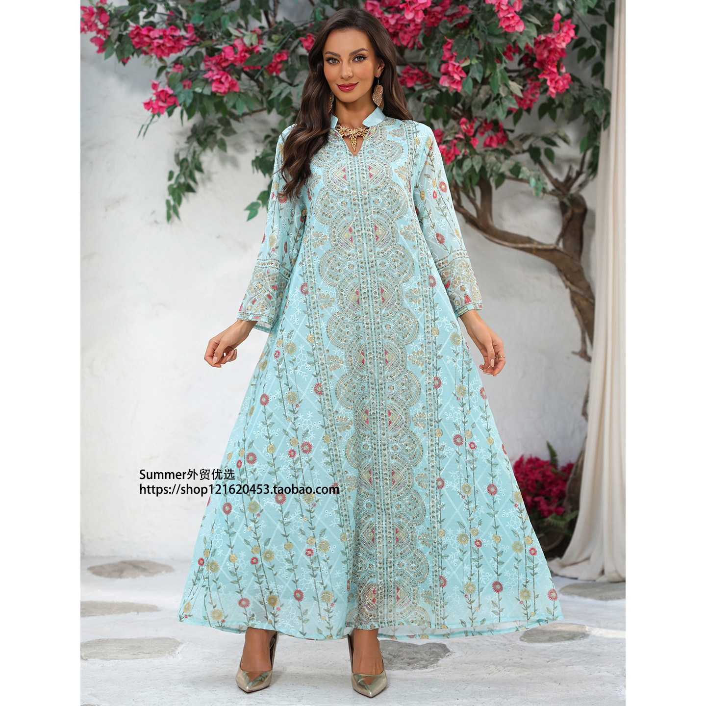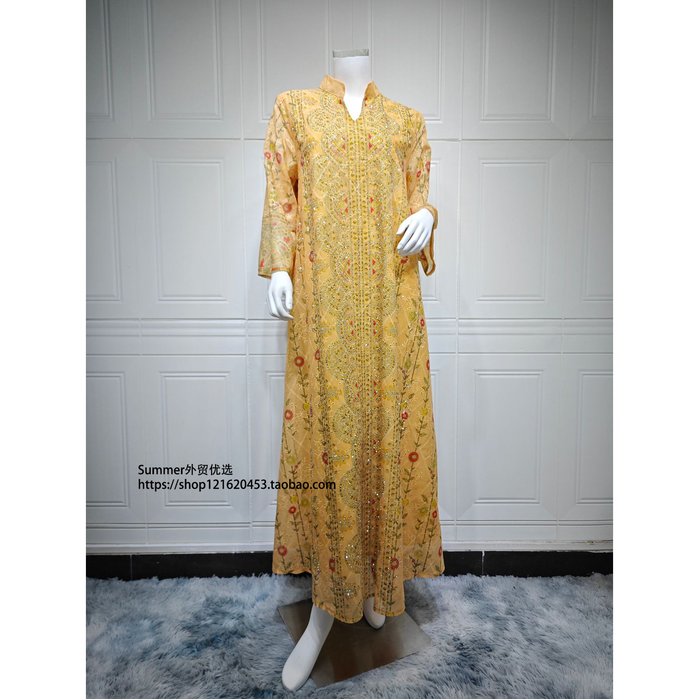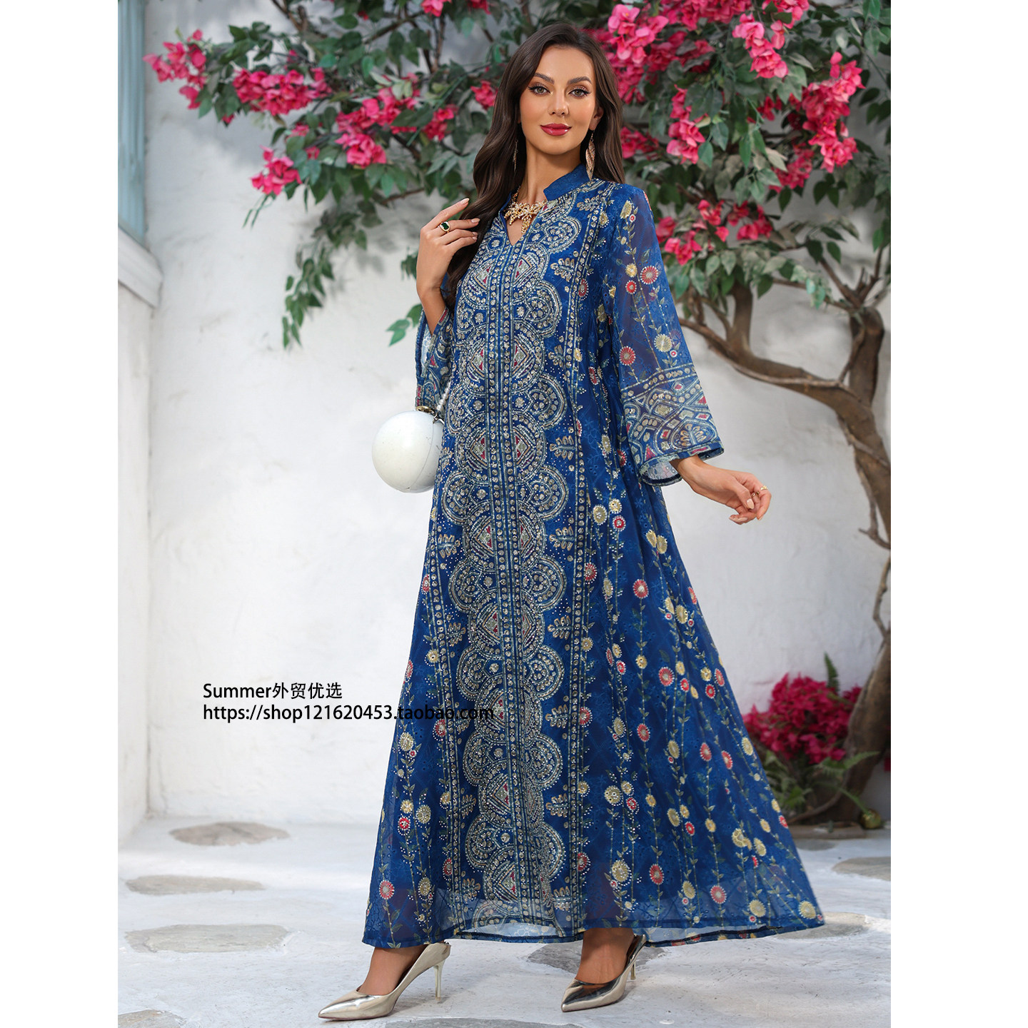 📚 欧美女装印花定位烫钻时尚民族长款宽松连衣裙Printed robe dress