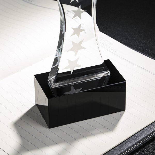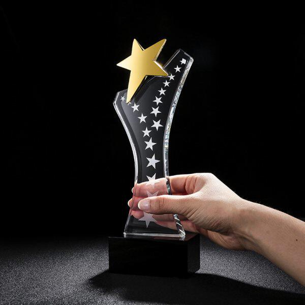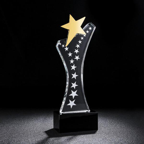 📚 五角星水晶奖杯定制定做创意水晶奖牌员工颁奖奖品玻璃刻字金色