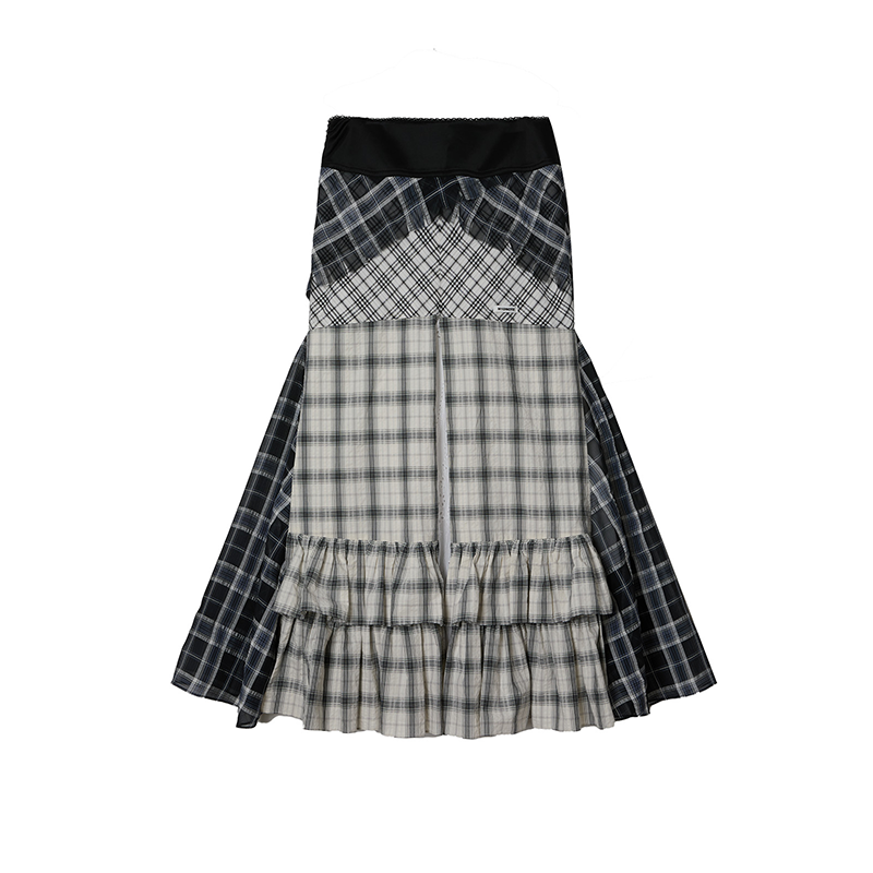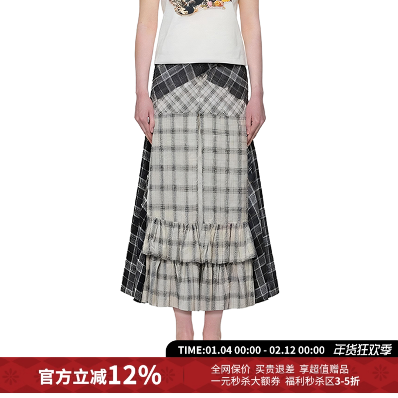 📚 M1DNOTE格纹面料拼接鱼尾中长款半身裙女26春夏新款