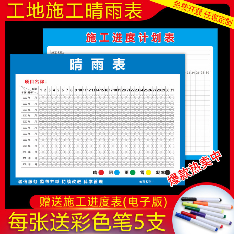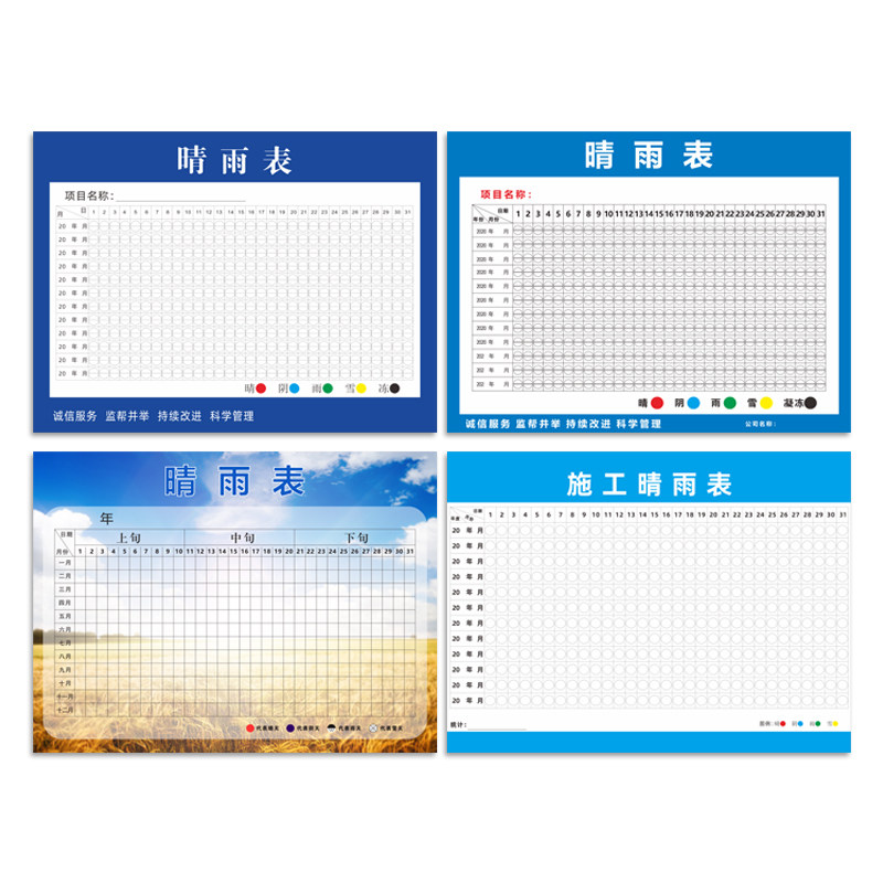 📚 工地施工晴雨表进度表通用八大员岗位职责建筑工程施工天气纸办公
