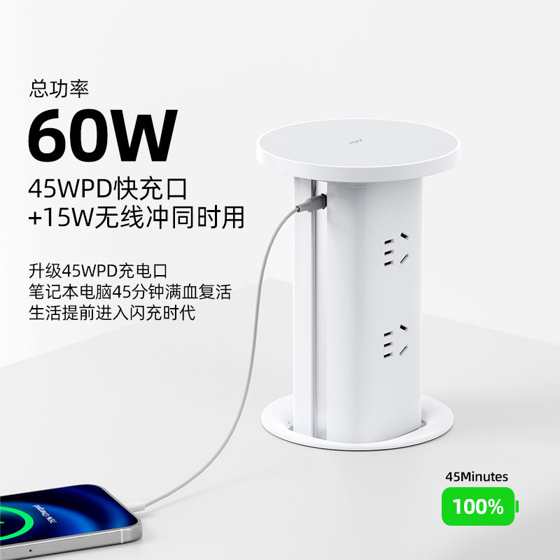 📚 【白色纯平】爱瑞堡RS60W升降插座厨房中岛嵌入电动隐藏排插电源