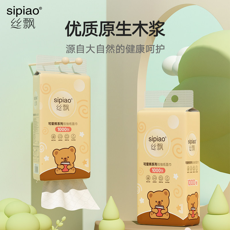 📚 丝飘萌熊系悬挂式抽纸家用面巾纸实惠装厨房用纸宿舍厕所卫生纸巾
