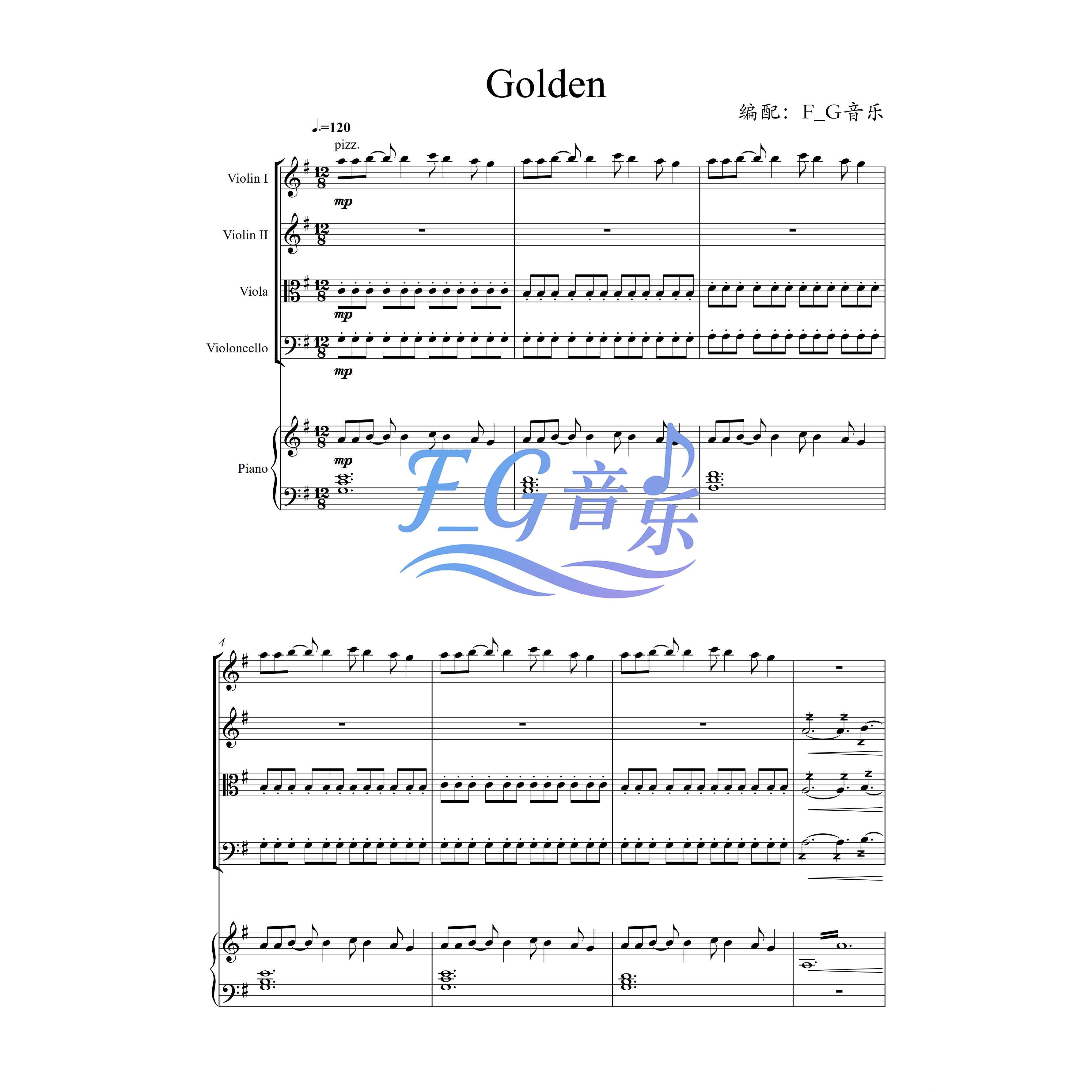 📚 Golden 弦乐四重奏+钢琴五重奏 猎魔女团 总谱 分谱 试听 高清PDF