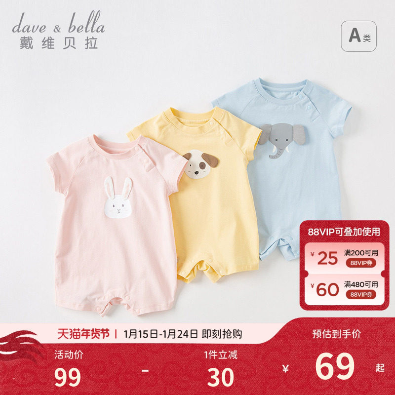📚 戴维贝拉A类婴儿衣服新生儿连体衣男宝哈衣女宝宝套装儿童连身衣
