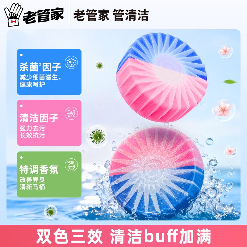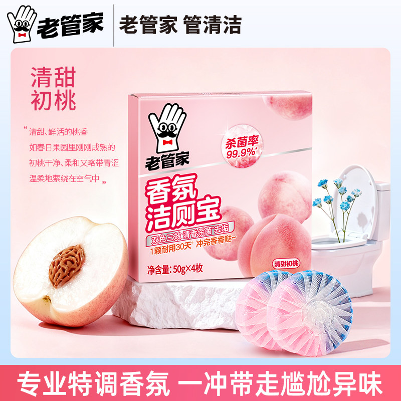 📚 老管家洁厕宝马桶清洁洗剂50g*4枚除垢清香蓝泡泡洁厕除臭神器