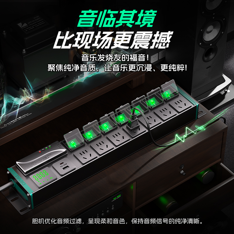 📚 德木电源滤波器音响插座专用抗干扰净化pdu插排影音降噪防雷排插