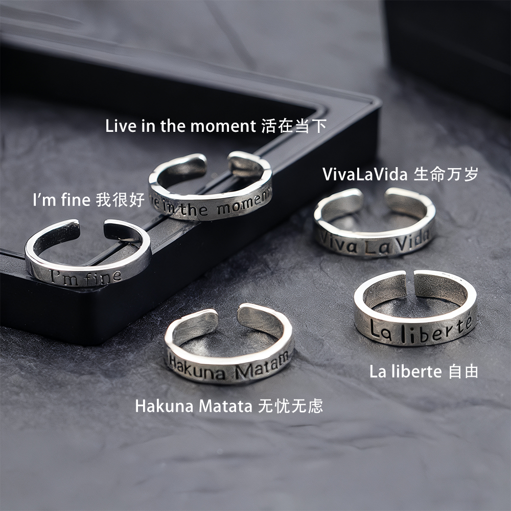 📚 Vintage古着 复古自律戒指小众设计高级感简约独特开口食指环配饰