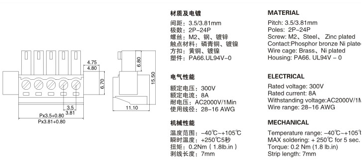 📚 插拔式PCB接线端子排 15EDGKM KF2EDGKM 3.81mm MC1.5 STF 连接器