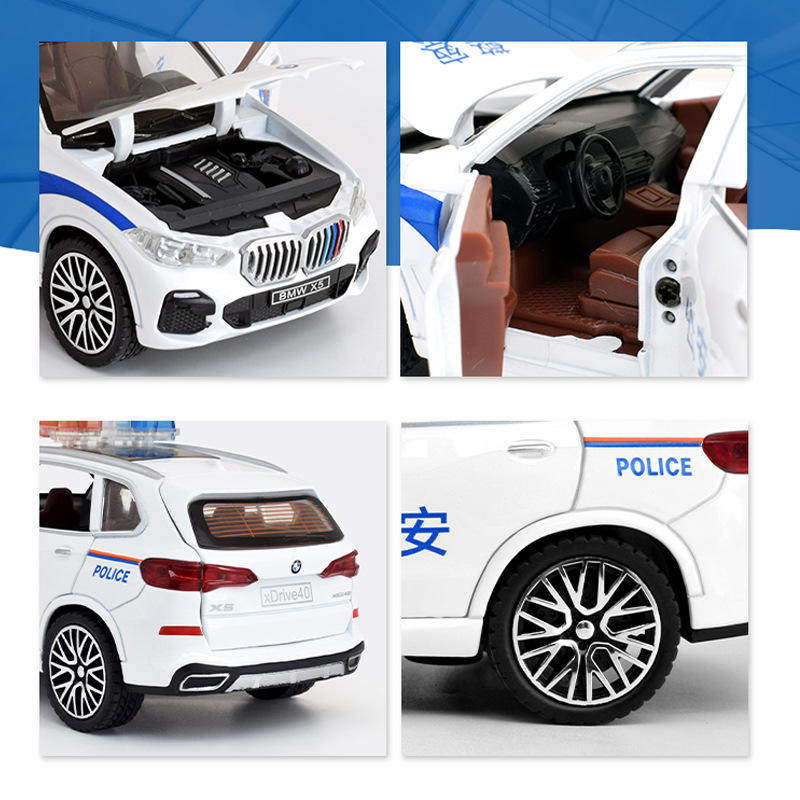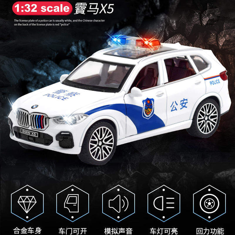 📚 新款 新奥1:32宝*X5警车六开门合金声光仿真汽车模型儿童玩具车