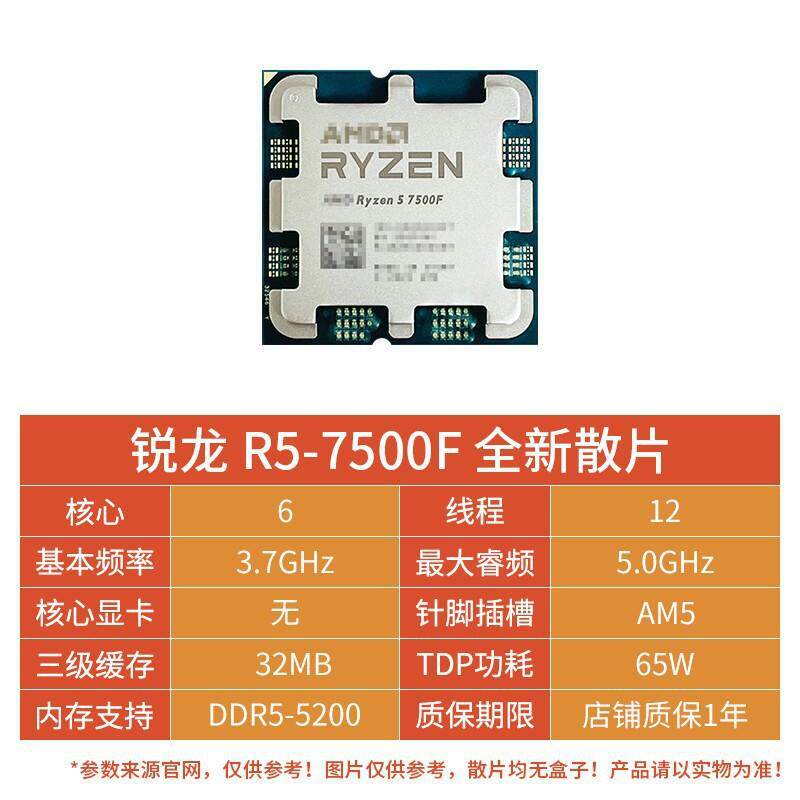 📚 AMD锐龙R5 7500F散片CPU6核12线程处理器适用B650/A620主板