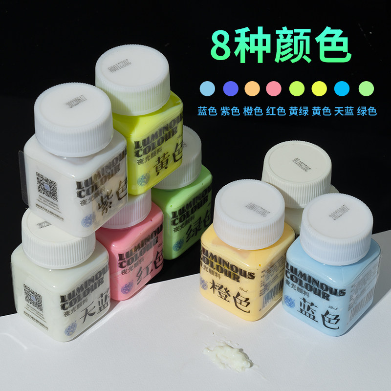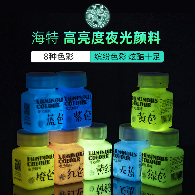 📚 海特夜光颜料荧光颜料丙烯颜料防水夜光漆发光涂料手绘DIY绘画增光剂荧光液衣服鞋子纺织液体荧光剂荧光漆