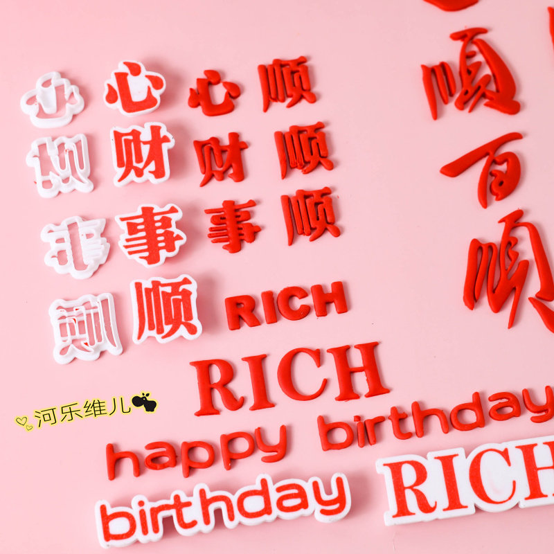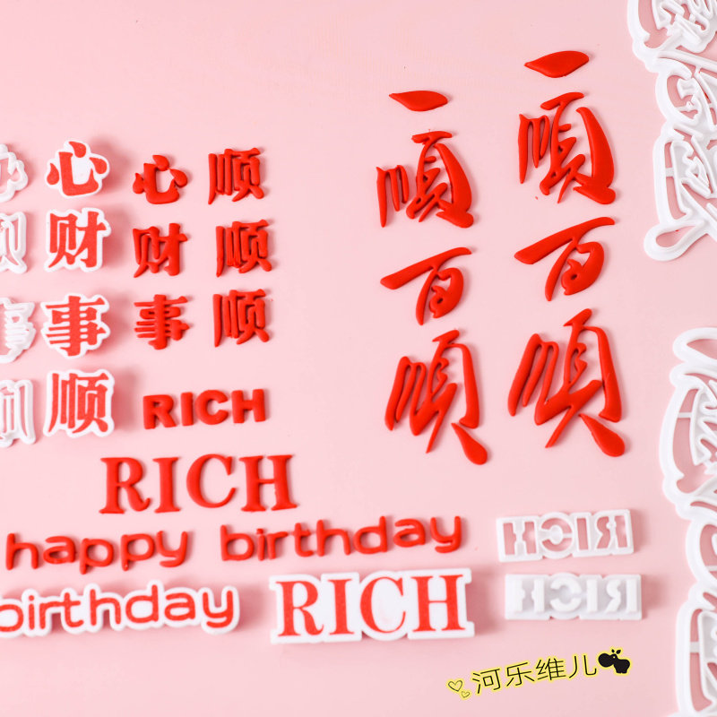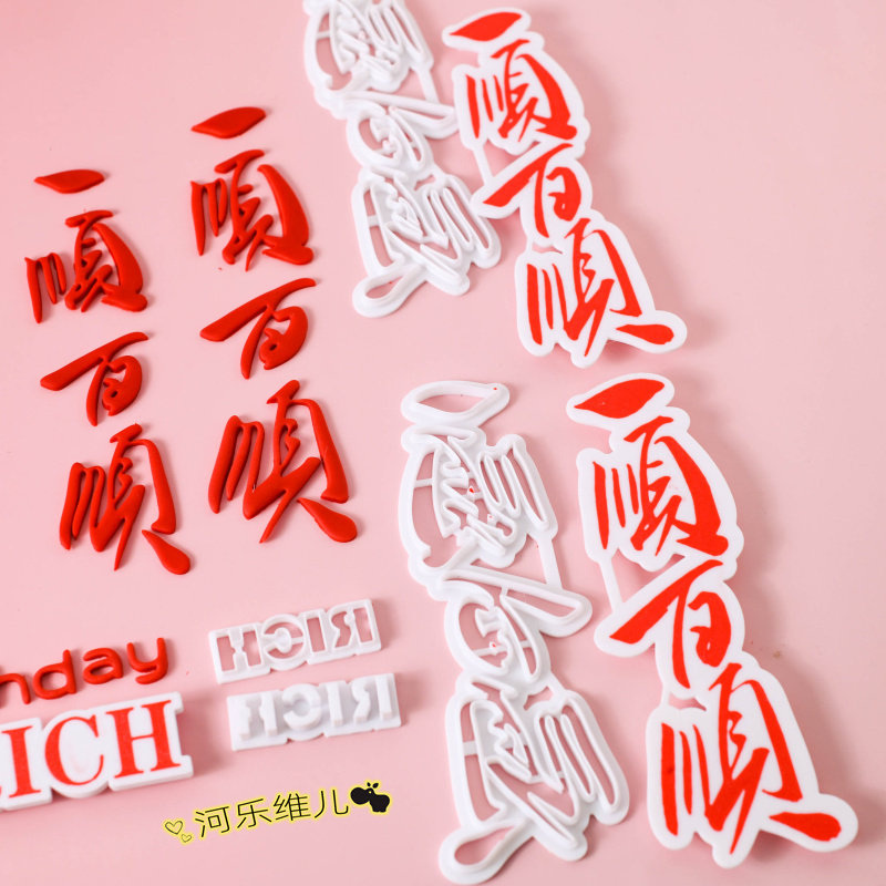 📚 一顺百顺 财顺心顺事顺切模 翻糖生日蛋糕烘焙模具