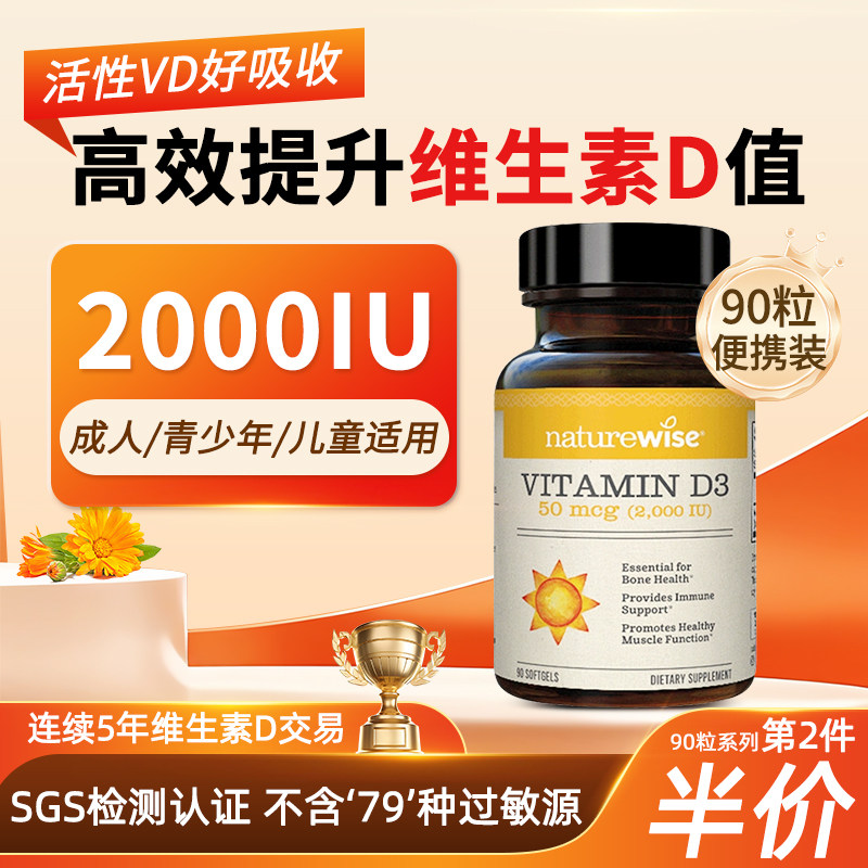 📚 Naturewise阳光瓶2000iu维生素D3成人女孕期25羟基活性VD钙镁锌k2