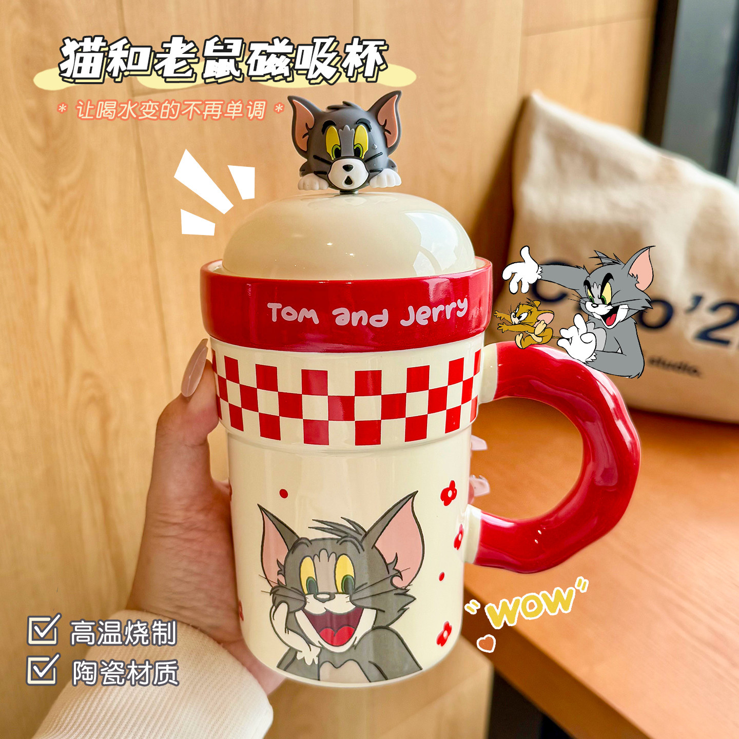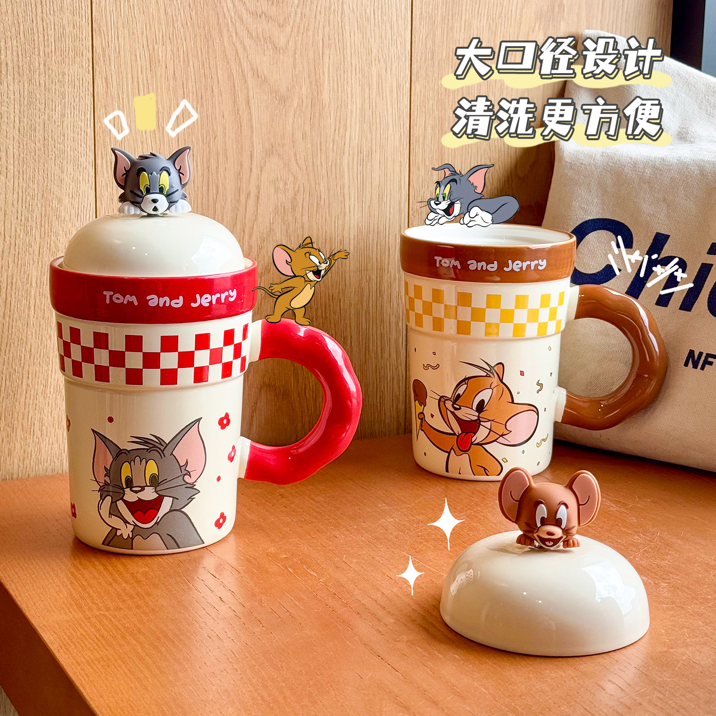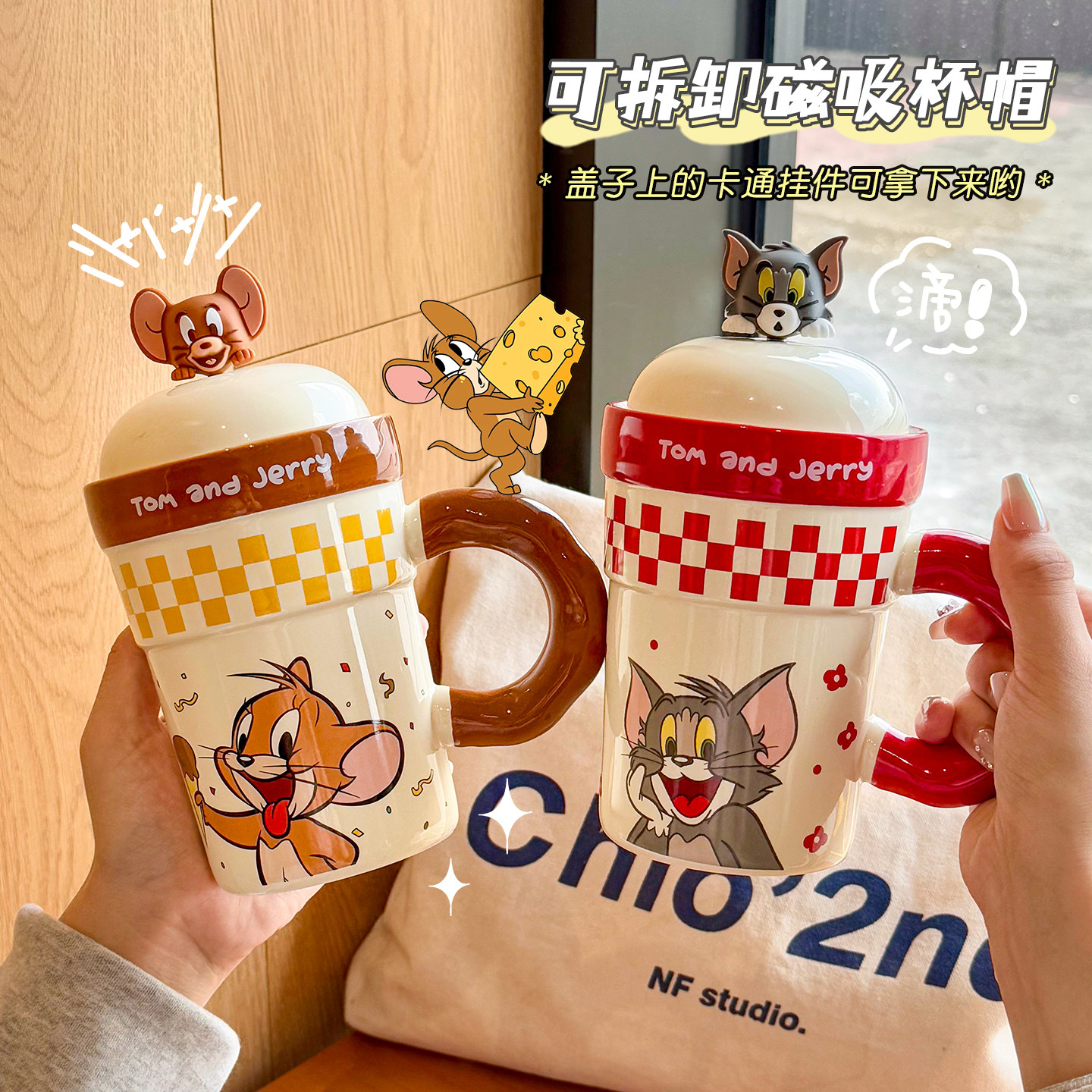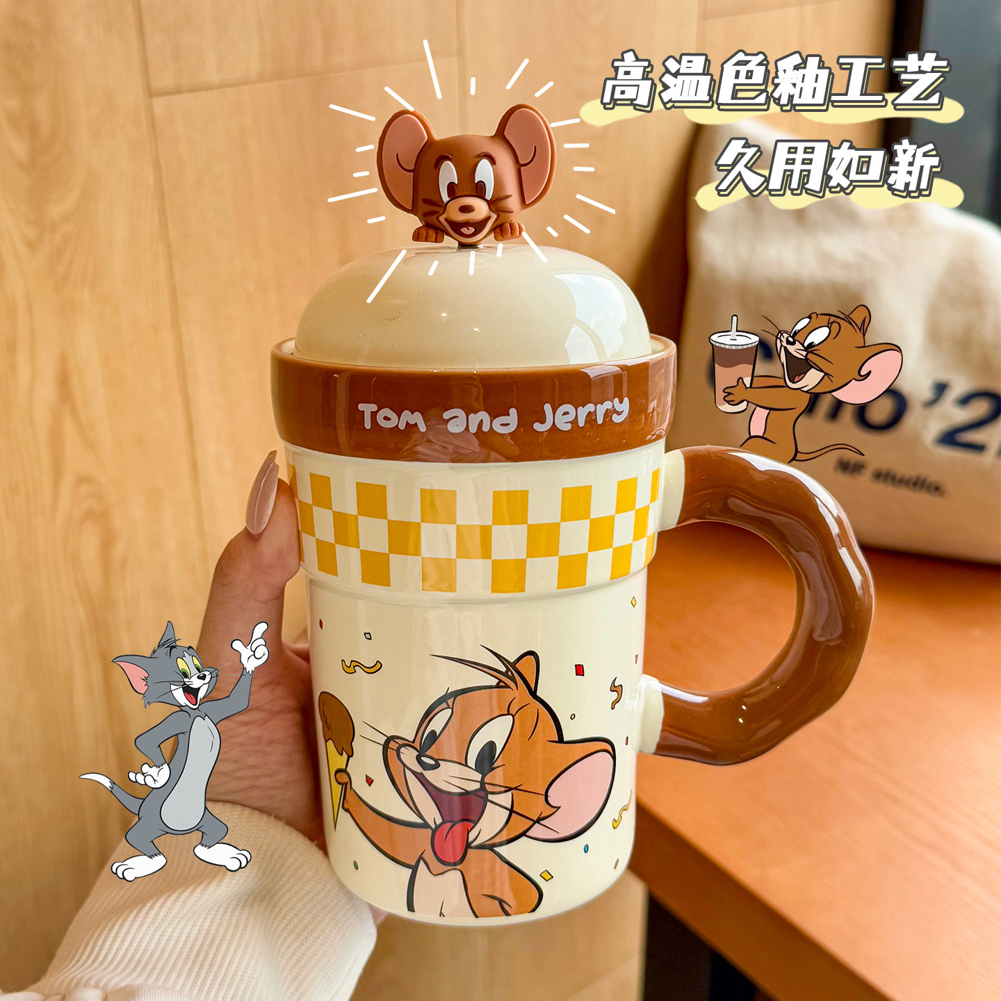 📚 猫和老鼠马克杯陶瓷杯带盖水杯办公室大容量家用2025新款早餐杯