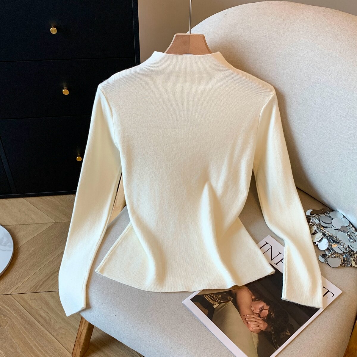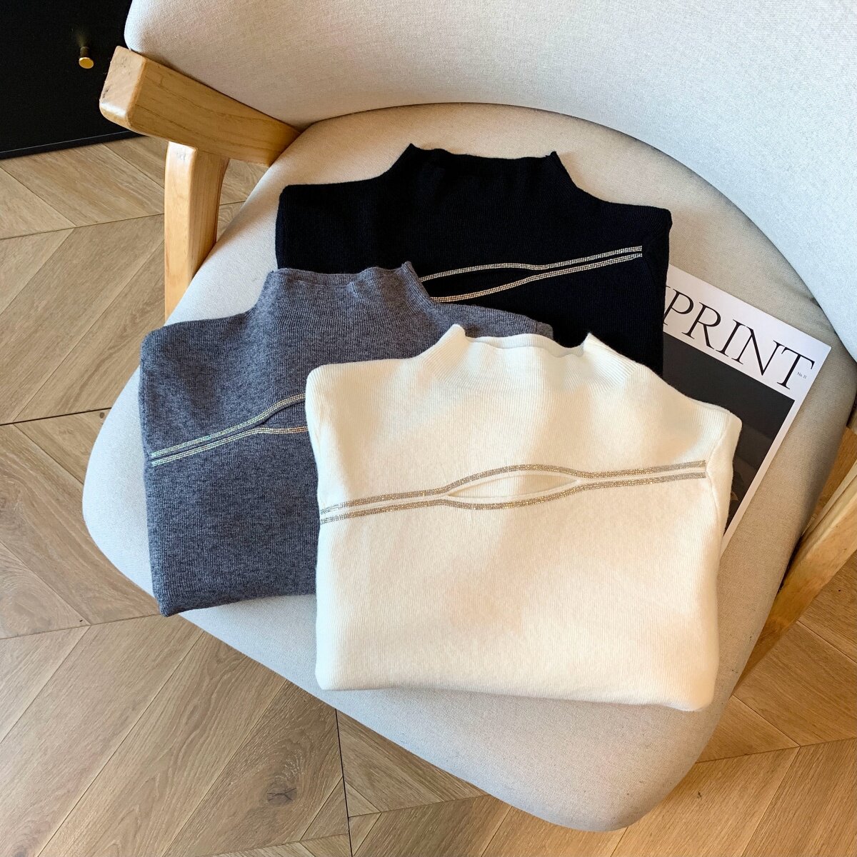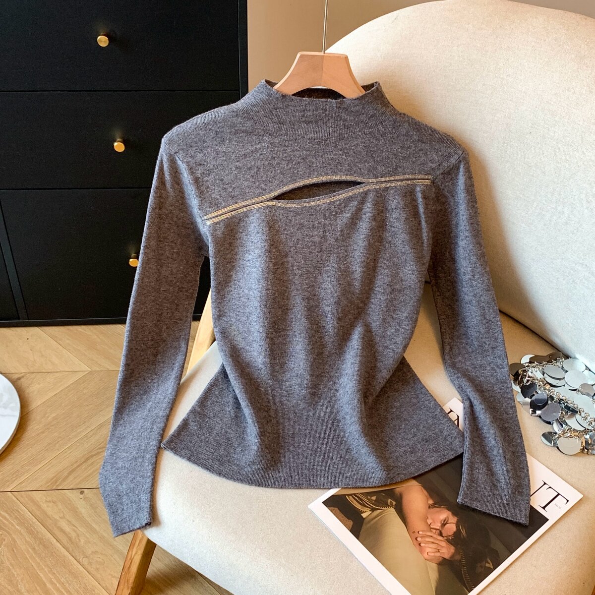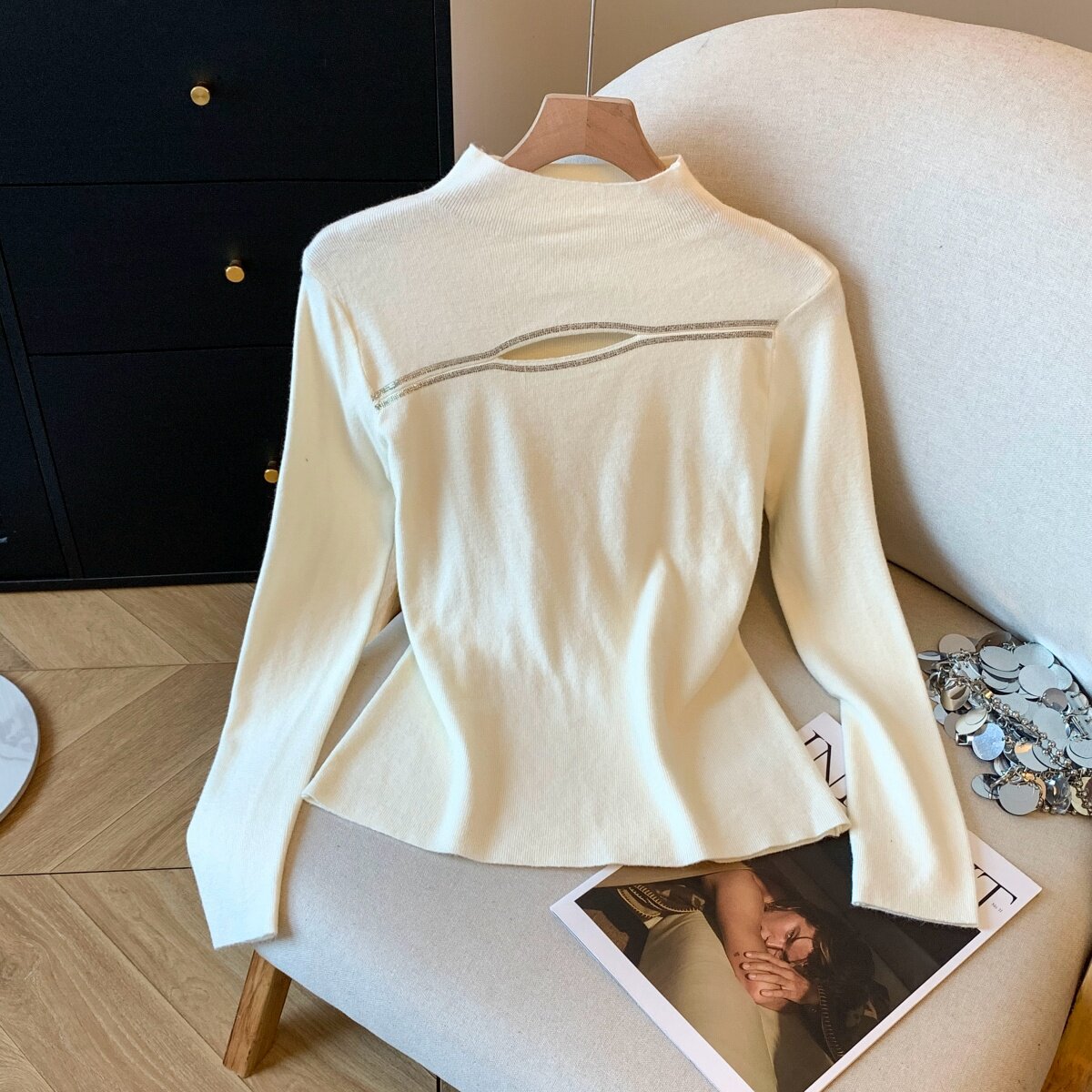 📚 实拍2025秋冬新款打底小心机针织衫高温烫钻内搭毛衣胸口漏洞上衣