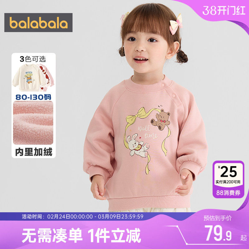 📚 巴拉巴拉宝宝卫衣男童女童加绒上衣秋冬季新款儿童长袖t恤打底衫