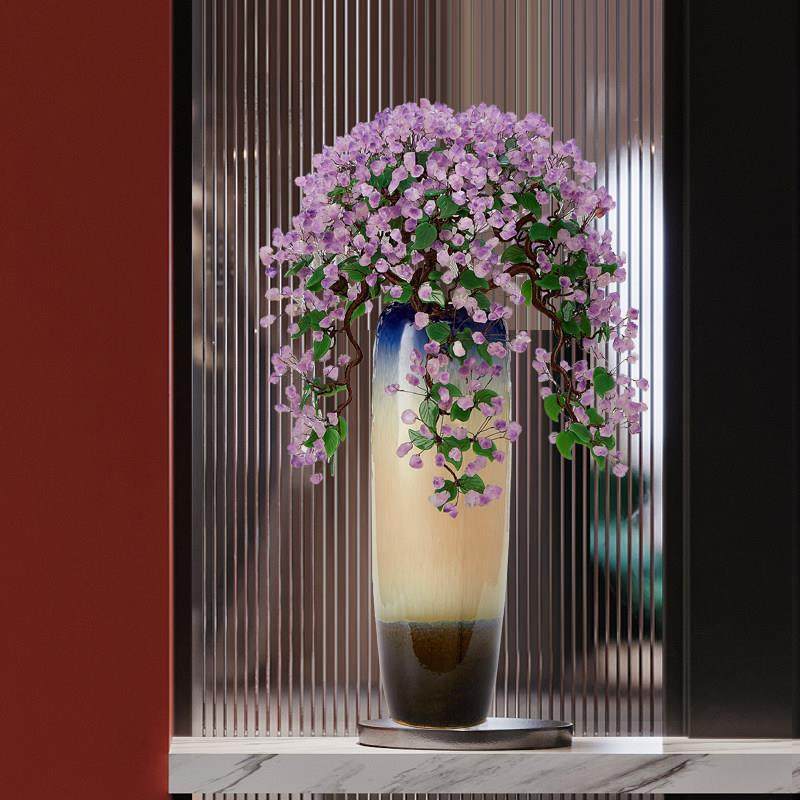 📚 轻奢紫水晶招财摆件玄关客厅办公室店铺八方来财摇钱树落地装饰品