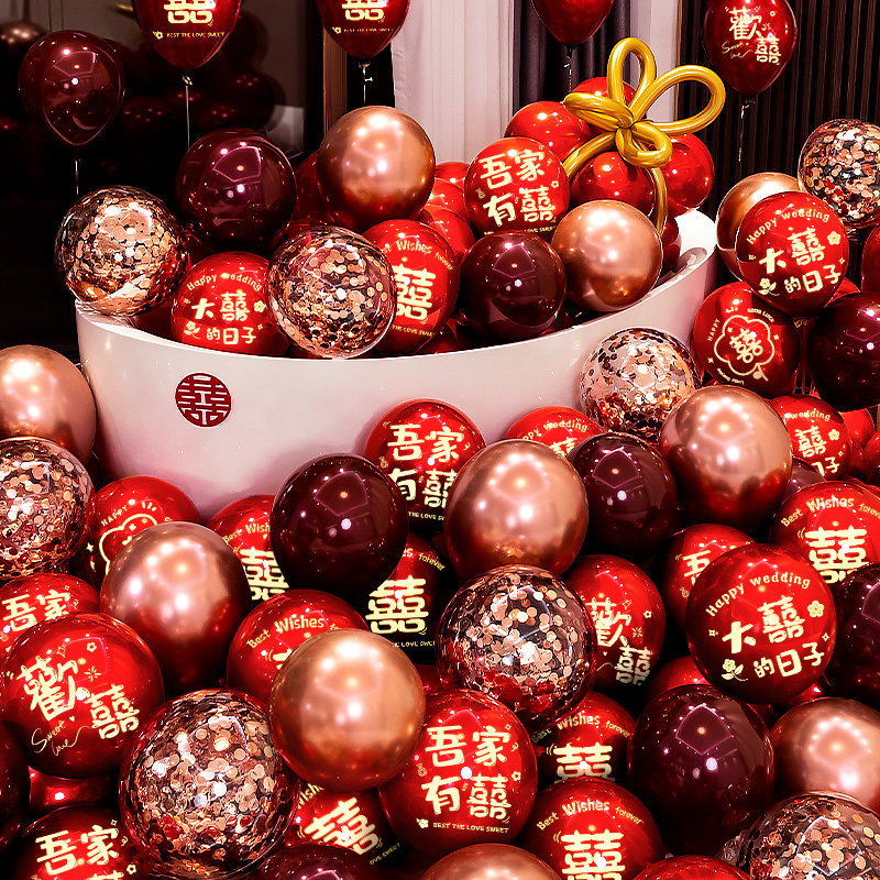 📚 气球结婚布置婚房装饰婚礼专用红色喜字汽球订婚场景婚庆用品大全