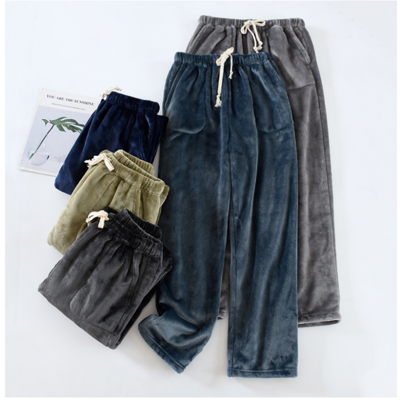 📚 加厚珊瑚绒睡裤男士冬季加绒直筒宽松大码加长法兰绒家居裤可外穿