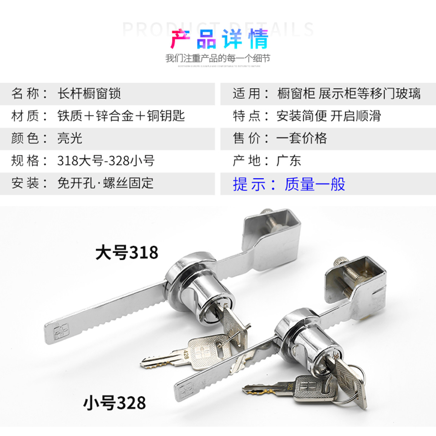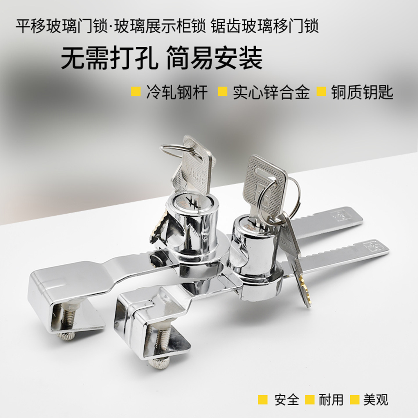 📚 318免打孔推拉小玻璃门锁通用型展示柜橱窗柜雪糕柜移门锁专用锁