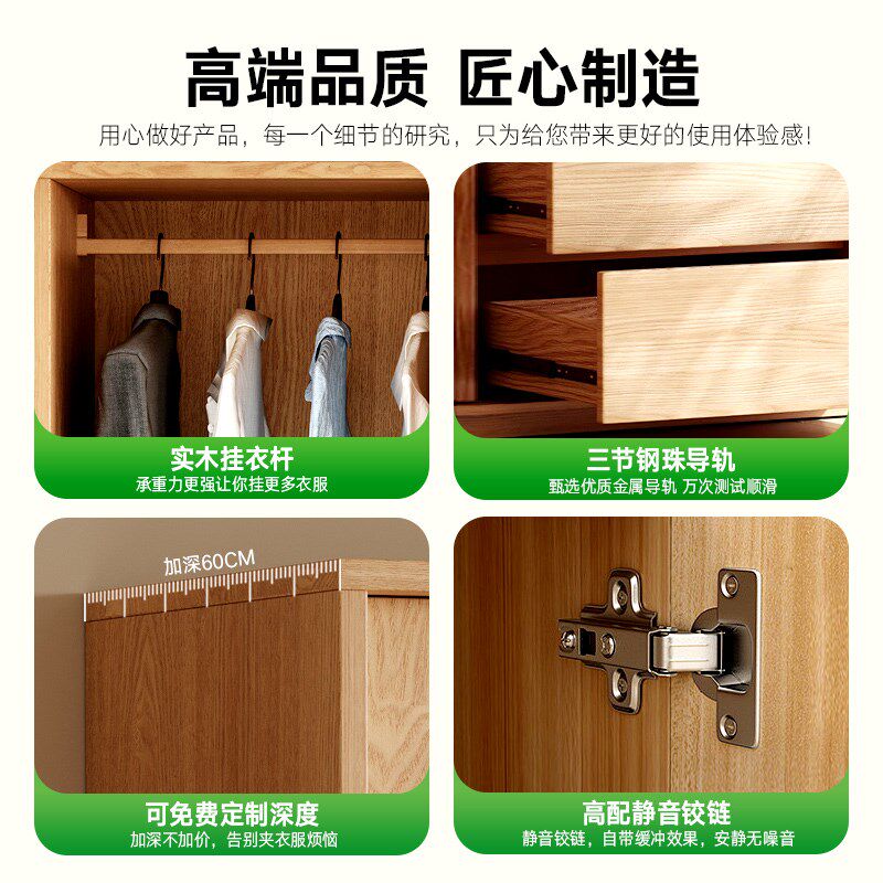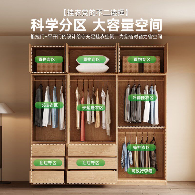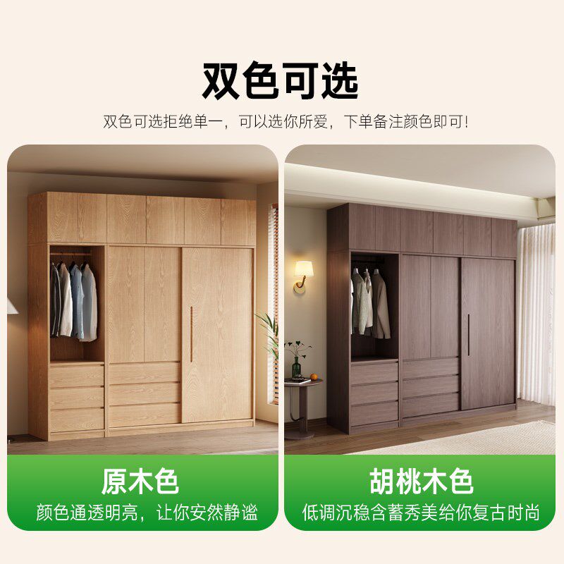 📚 优选全实木衣柜推拉门家用卧室2024新款小户型橡木原木风儿童定制