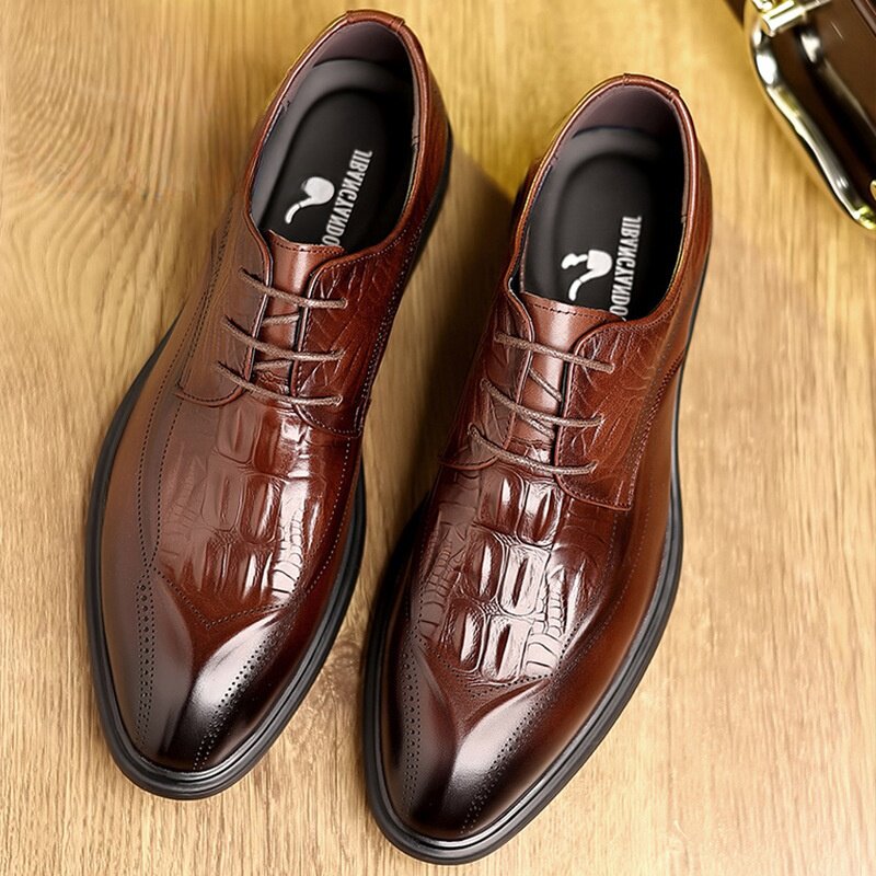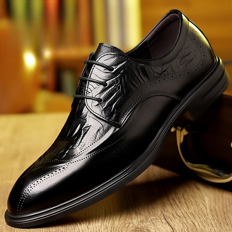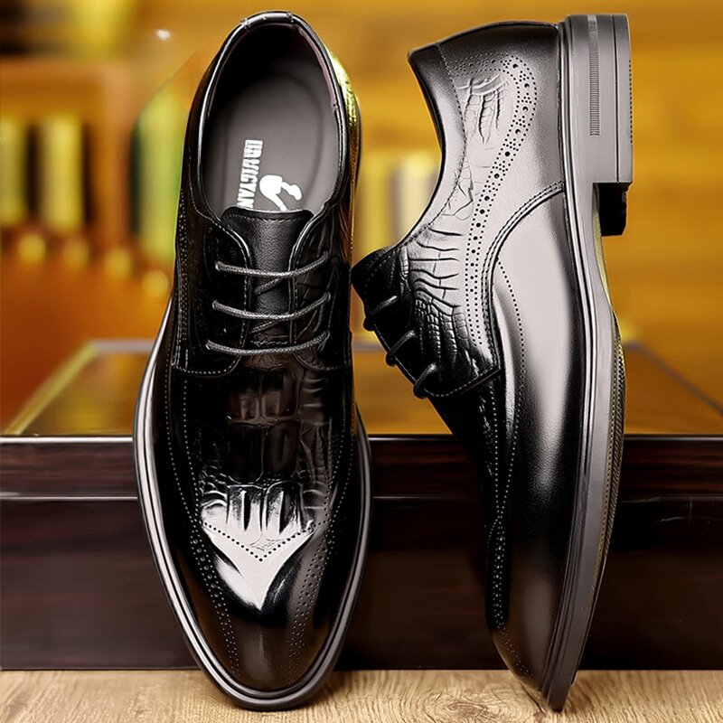 📚 VOGUE GLAM头层牛皮商务正装休闲皮鞋通勤男士鳄鱼纹绅士舒适百搭