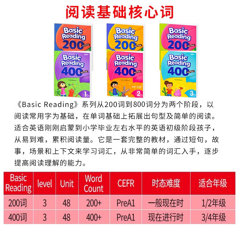 📚 美国原版少儿英语教材常见词点读版 Basic Reading 200词 400词全套赠太空人点读笔 提高单词积累加强读写能力高频词阅读key words