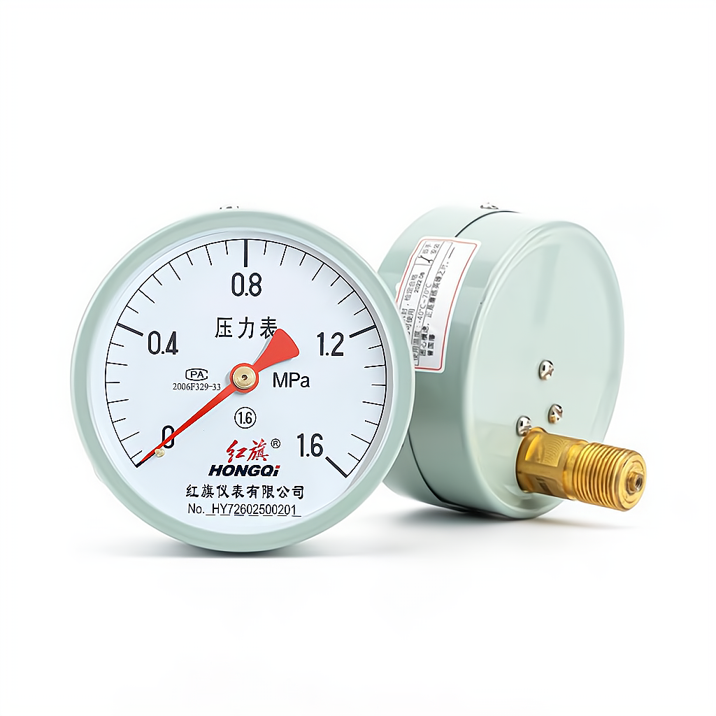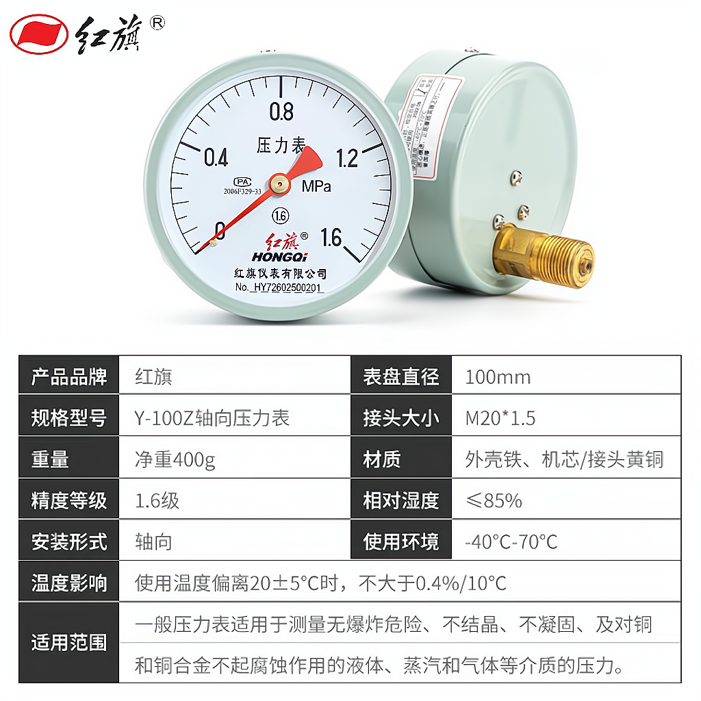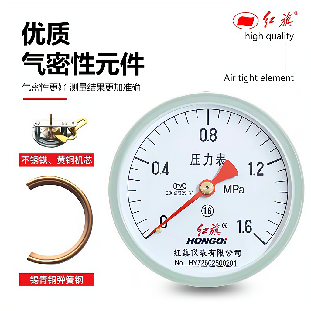 📚 正品中国红旗储气罐轴向气压表Y100Z空压机0-1.6Mpa压力表